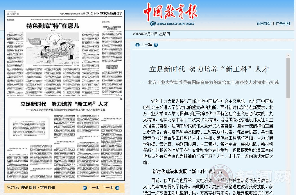 6月7日,《中国教育报》第七版“理论周刊.学校科研”刊登了永利官网党委书记郑文堂的理论文章《立足新时代 努力培养“新工科”人才——304永利集团官网入口培养具有国际竞争力的复合型工程科技人才探索与实践》。文章从中国特色社会主义进入新时代这一重大政治判断出发,分析了新时代高等教育发展的新要求,从理论和实践深入阐释了304永利集团官网入口立足传统工科院校基础,大力发展 “新工科”专业和特色专业集群,积极探索和培养富有时代特点...