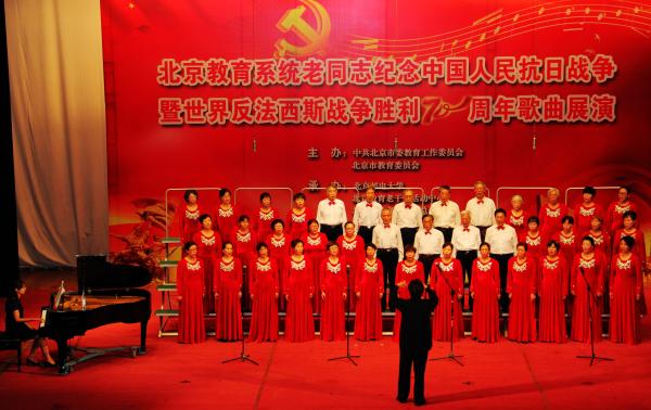 6月26日上午,永利官网老教师合唱团首次组队参加了由北京市委教育工委举办的北京市教育系统老同志纪念抗日战争胜利70周年歌曲汇演活动。