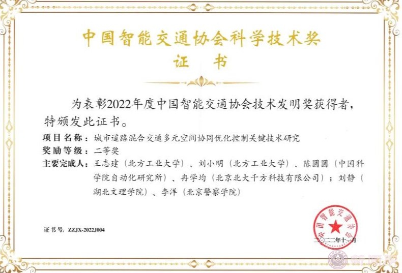 11月9日,第十七届中国智能交通年会(ITSAC2022)暨2022中国智能交通大会(以下简称“活动”)在成都盛大开幕。会上,学校获中国智能交通协会技术发明奖二等奖1项(第一完成单位),科学技术进步二等奖1项、三等奖1项。电气与控制工程学院王志建教授、刘小明教授牵头完成的“城市道路混合交通多元空间协同优化控制关键技术研究”成果荣获2022年度中国智能交通协会技术发明奖二等奖。该项目突破了融合社会车辆、公共交通、慢行交...