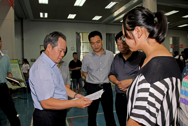(郑登文副主任一行视察迎新绿色通道) 9月8日上午,北京市教育委员会副主任郑登文,北京市财政局教育事业处处长李红娜、北京市学生资助事务管理中心主任张思堂一行莅临永利官网,视察指导迎新绿色通道工作,并就学生资...