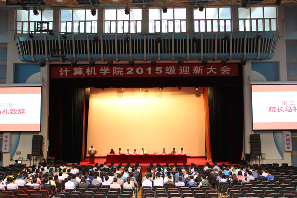 9月10日下午,计算机学院2015年级迎新大会在体育馆二层隆重举行。