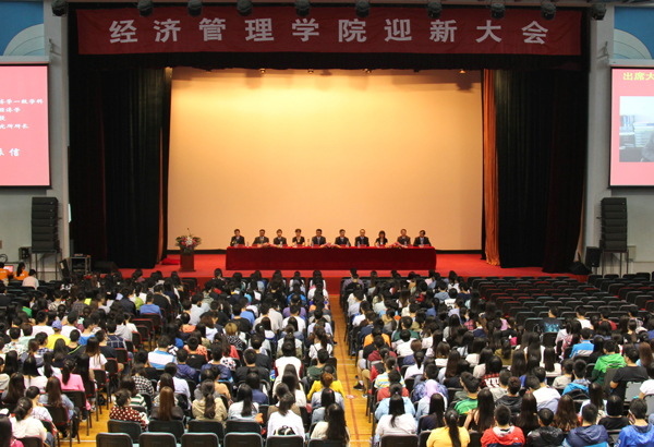 9月10日下午,经济管理学院在体育馆召开2015级迎新大会。