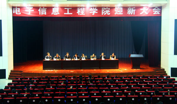 9月10日,电子信息工程学院在图书信息楼报告厅举行2015年迎新大会,副校长罗学科、院党委书记张常年、副院长王月海、曹淑琴、院党委副书记王伟宾及各系主任主席台就坐。