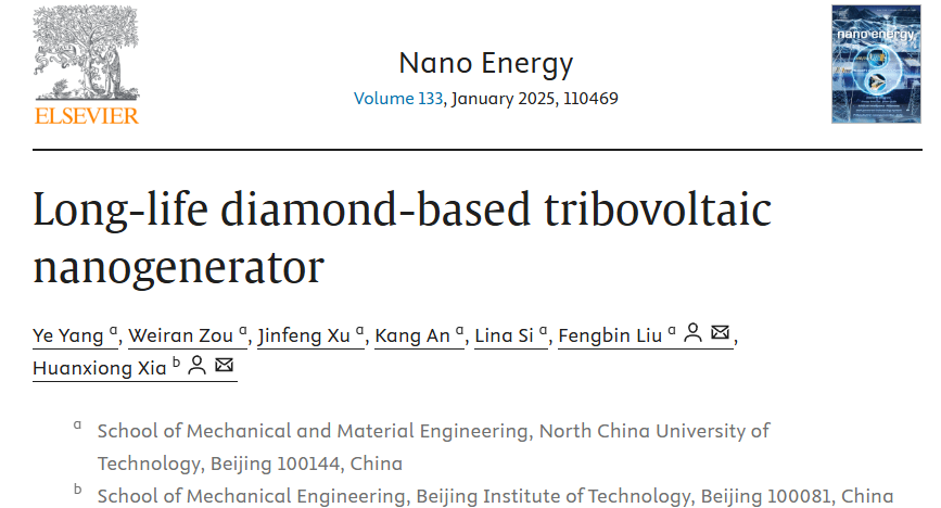 近期,永利官网机械与材料工程学院刘峰斌教授团队在能源材料的顶级学术期刊《NanoEnergy》上发表论文“Long-lifediamond-basedtribovoltaicnanogenerator”。该期刊为中科院一区Top期刊,五年影响因子16.3。永利官网杨晔副教授为第一作者,2022级硕士研究生邹蔚然为第二作者,刘峰斌教授为通讯作者。基于半导体材料的直流摩擦纳米发电机(DC-TVNG)是半导体能源领域的研究重点。硅片等半导体材料在摩擦过程中的磨损会导致DC-TVNG输出电...