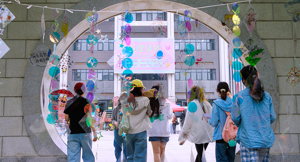 2025年5月21日中午,心理健康季主题室外活动在毓秀广场和毓秀园举行。活动由学工部和校团委联合主办、学生会承办,以“美润心田‘享’愈集市”为主题,通过创意体验项目,帮助学生放松身心、疏解情绪、积极成长,吸引了2000余名师生参加。活动以“给心情翻个页”的创意入场仪式开启,参与者先领取一张独特的“情绪宝典”卡,作为活动的“通行证”和藏着温暖寄语的“心灵药方”,穿过由PVC彩帘串成的“心灵之门”,进入“心灵集...