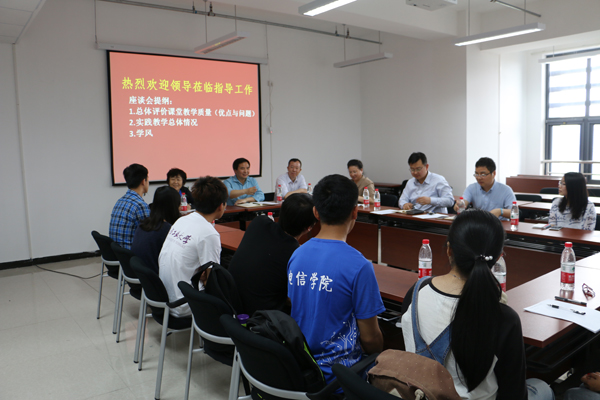 5月4日下午,副校长王建稳、教务处处长王景中、督导员杨其伟到电子信息工程学院指导工作并与学生进行座谈。