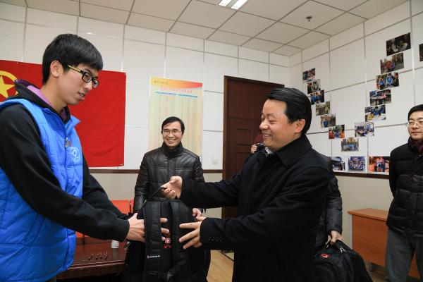 2017年1月20日,恰逢农历“小年”,团中央书记处书记傅振邦、团中央学校部副部长宋来、团市委副书记王洪涛、团中央学校部学联办主任柏贞尧、团市委大学部部长张秀峰等一行来到永利官网,亲切看望和慰问寒假留校学生。