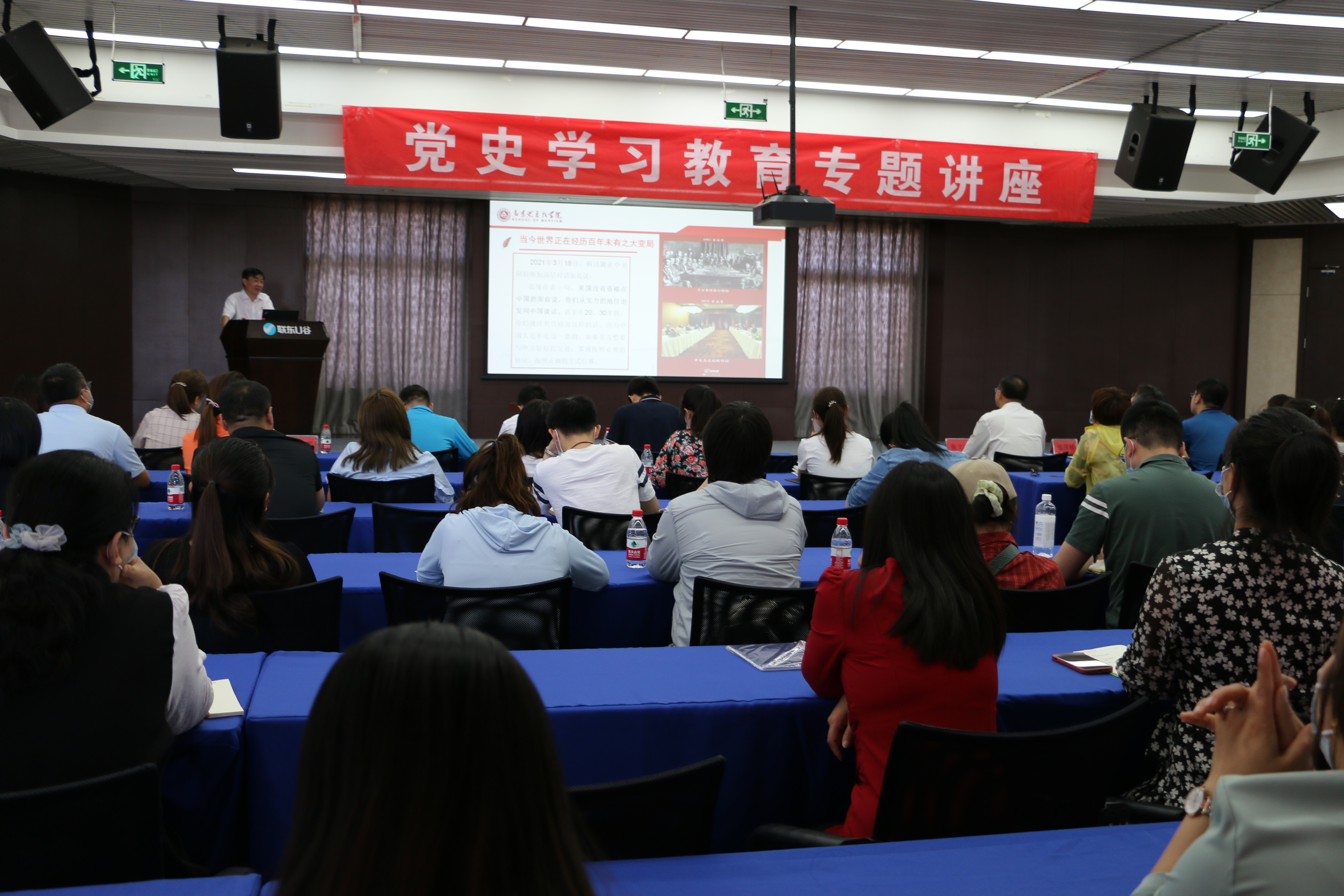 经济管理学院于5月27日晚在图书信息楼报告厅开展主题为“百年党史中的六次自我革命带给我们的现实启发” 主题党课,学院党委副书记赵洁主讲本次党课,全体18级学生参加了此次党课的学习。赵洁老师在讲座中强调了党史学习教育的意义,选取了八七会议、遵义会议、延安整风运动、践行“两个务必”思想的整风整党运动、十一届三中全会和全面从严治党新征程这百年党史中的六个关键历史节点,详细讲述了这六次自我革命的重大意义。她...