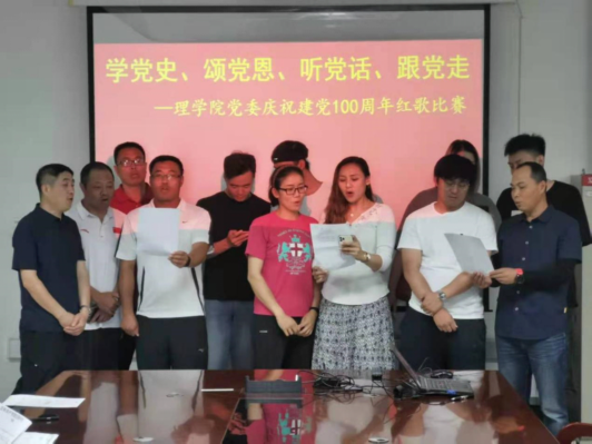 今年是中国共产党成立100周年,是“十四五”规划开局之年。为深入开展党史学习教育,大力培育和践行社会主义核心价值观,热情讴歌党的光辉历程和伟大成就,继承发扬党的光荣传统和优良作风,理学院党委于6月10日在博远楼805举办理学院庆祝中国共产党成立100周年“学党史、颂党恩、听党话、跟党走”唱红歌比赛,学院各教工支部分别组成合唱团参加了比赛。首先进行演唱的是体育系教工党支部,体育系教师激情澎湃,用嘹亮的声音演...