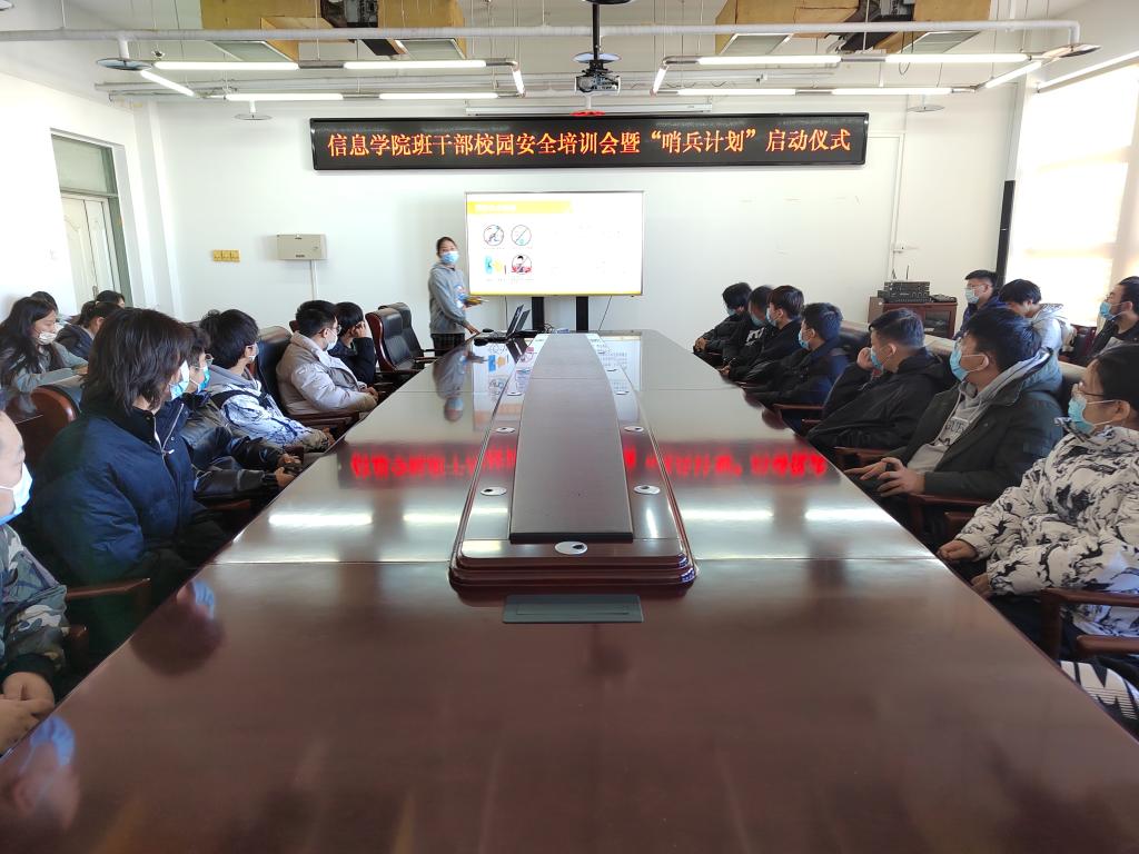 为强化学生安全意识,提高安全防范能力,进一步培育一支”平安校园”建设中有担当的学生干部队伍,11月30日中午,信息学院组织召开了校园安全培训会暨“哨兵计划”启动仪式,各班班长、生活委员共100余人参加了培训会。会上,学生干部代表就消防安全、人身安全、财产安全、交通安全、信息安全等方面进行了讲解,引导大家充分发挥学生干部的带头作用,争当安全知识的倡导者,安全文化的传播者,平安校园的建设者和安全隐患的“小...