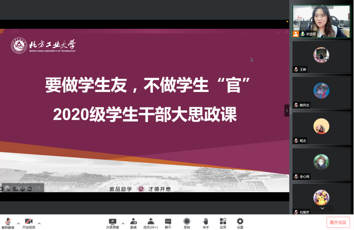 为充分发挥班干部在“自我管理、自我服务、自我教育、自我监督”中的作用,引导其将同学居家学习的日常管理、关心,及疫情防控工作抓紧、抓细、抓实,信息学院2020级开展系列班干部培训会,会议围绕疫情防控常态化下,班干部如何做好同学的“贴心人、真心人、用心人”的主题展开培训交流。提高政治站位,不让“班级工作”因“疫”而“减”。辅导员史崟妮对疫情防控期间2020级全体班干部的工作重点进行了明确,要求全体干部要...