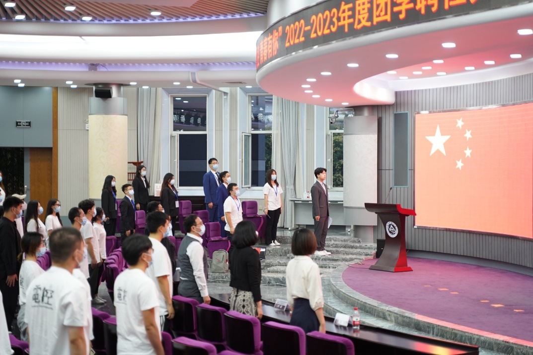 9月29日,电控学院团委2022-2023学年团委学生会换届仪式在广学楼报告厅举办,学院党委书记李颖宏、党委副书记王磊,团委书记田儒基及学院辅导员、团学全体成员参加了换届仪式。上届团委学生会主席团代表朱虹宇同学发言,他表示,新时期,新征程,新使命,时代要求团学成员要勇做新青年,追求新高度,开拓新格局。本届团委学生会主席团代表曾璐表示,新一届主席团将不负众望,勠力同心,积极拼搏,在新的一年里,坚持“爱我电控...