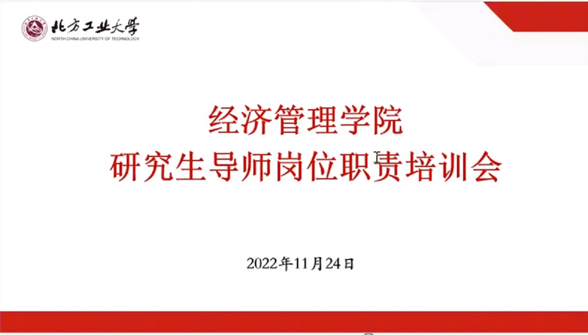 为进一步加强研究生导师队伍建设,聚焦研究生全过程人才培养机制,推动研究生各项工作有序进行,夯实研究生导师第一责任人职责,坚持立德树人,全力培养优秀的管理类硕士研究生,11月24日下午,经济管理学院以腾讯会议形式召开线上研究生导师岗位职责培训会。全院全体研究生导师及新进教师参加了此次会议。会议由副院长蒋贵凰副院长主持。学院院长赵继新从招生、日常教学、课程创新、日常沟通、就业等全流程说明研究生培养工作...