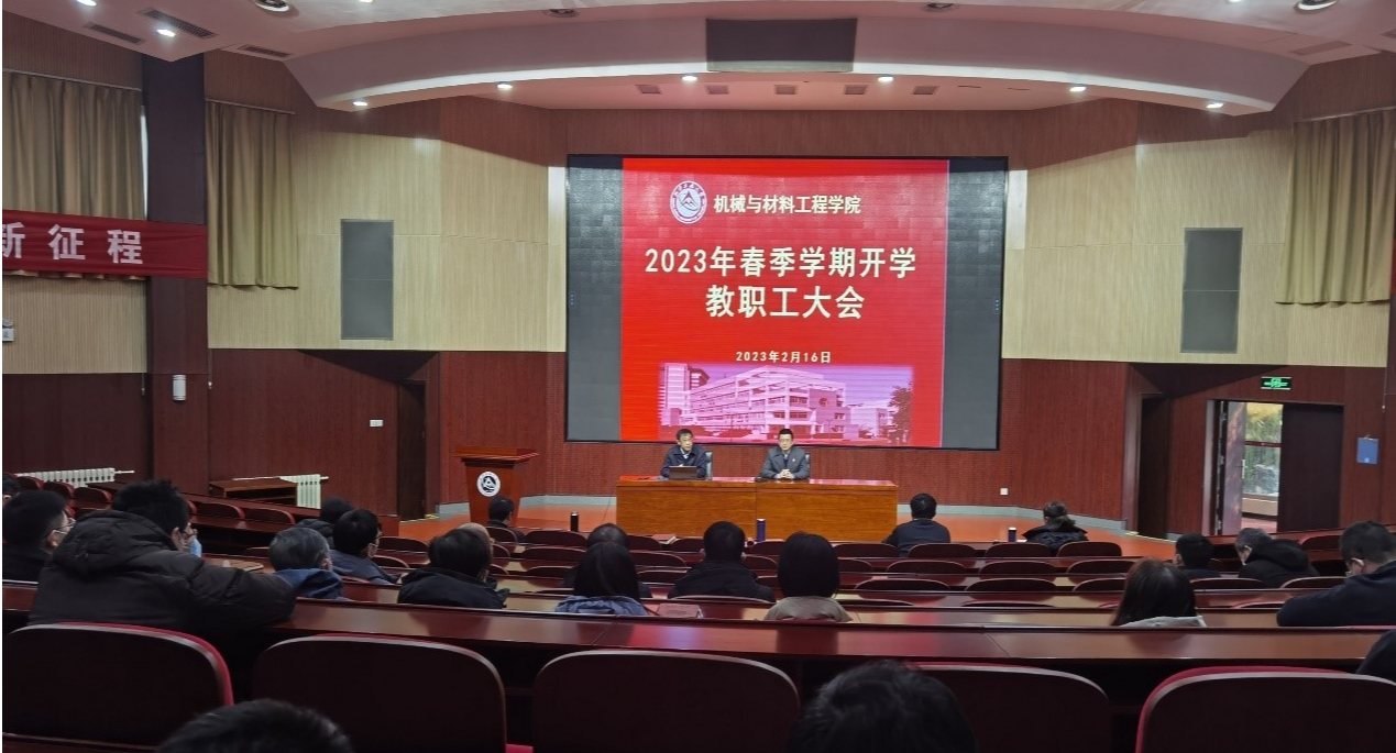 为推动新学期工作有序、高效开展,动员全体教职工凝心聚力、共谋发展,机械与材料工程学院于2月16日召开新学期全体教职工大会,全体教职工参会,学院院班子出席会议并讲话。院长刘峰斌对2022年秋季学期的工作进行了总结,并对2023年重点工作及工作任务进行了部署。他表示,去年在学校党委、行政的正确领导下,学院克服疫情复杂多变带来的困难,全院教职工勠力同心、共同打拼,在师资队伍建设、专业建设、教育教学、学生科技竞赛...