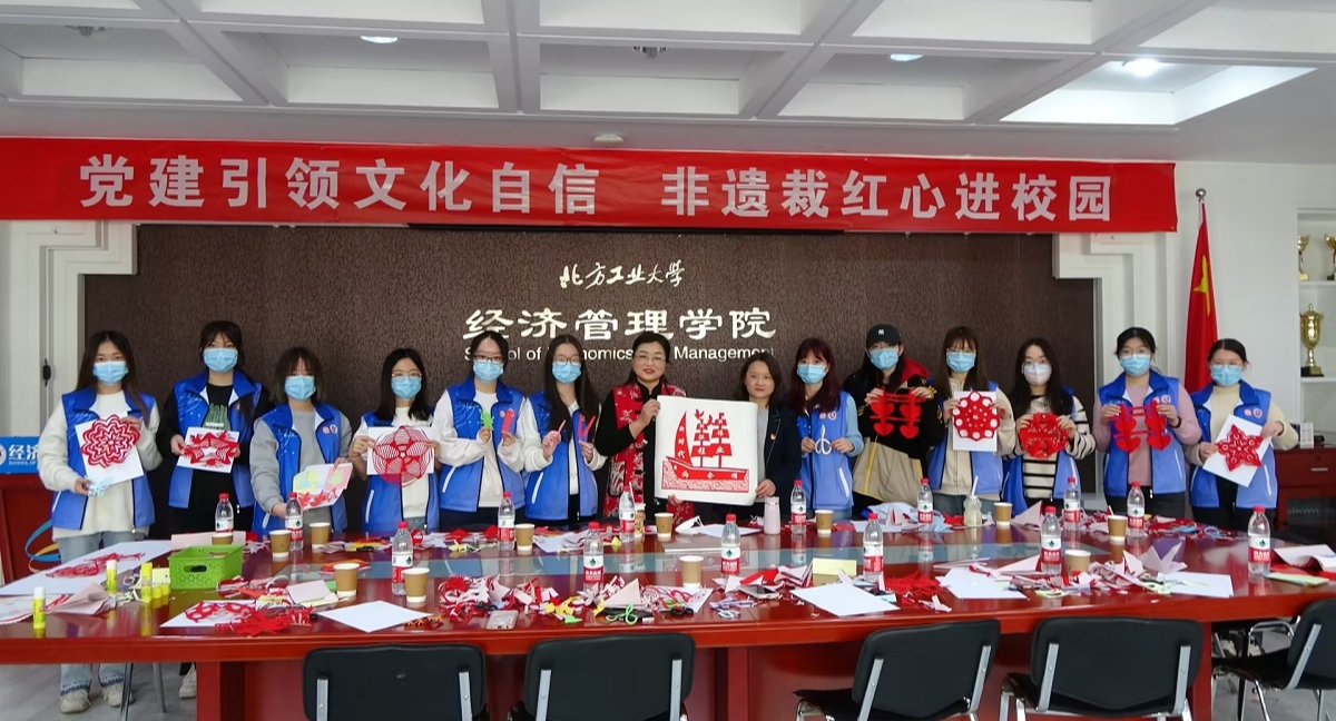 3月17日,经管学院会计系第二学生党支部发挥党建引领作用,联合石景山非遗中心党支部,邀请石景山区非遗剪纸艺术传承人杨秀英老师走进校园,为支部党员师生带来一堂不一样的党史学习课。课上,杨秀英老师带领支部党员参观了杨老师和学院党委合作,创作的第一次全国代表大会至第二十次全国代表大会的非遗剪纸作品。支部党员们在参观中,通过每一幅剪纸作品,重温了党的一大到党的二十大的历史,加深了党史学习的效果。学习环节,...