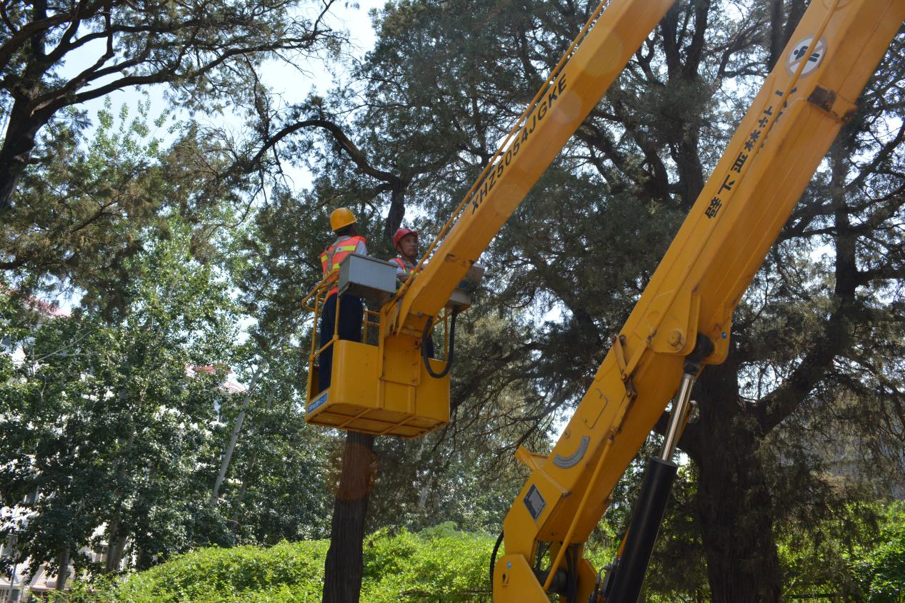 6月14日,服务中心绿化环卫服务部邀请石景山区园林局两位古树专家入校指导古树修复保护工作,对学校古松园内一株出现扭裂的二级古树进行了紧急修复,确保了受损古树的健康生长。此前,绿化服务部在古树日常巡视检查中发现一株古树枝干发生了扭裂现象。经区园林局绿化发展科两位专家查验诊断,扭裂为大风天气所致。专家现场指导绿化工修补、刮平伤口毛刺,均匀涂刷桐油,保护受伤部位不被雨水腐蚀;在枝干伤口处缠裹胶皮,安装铁...
