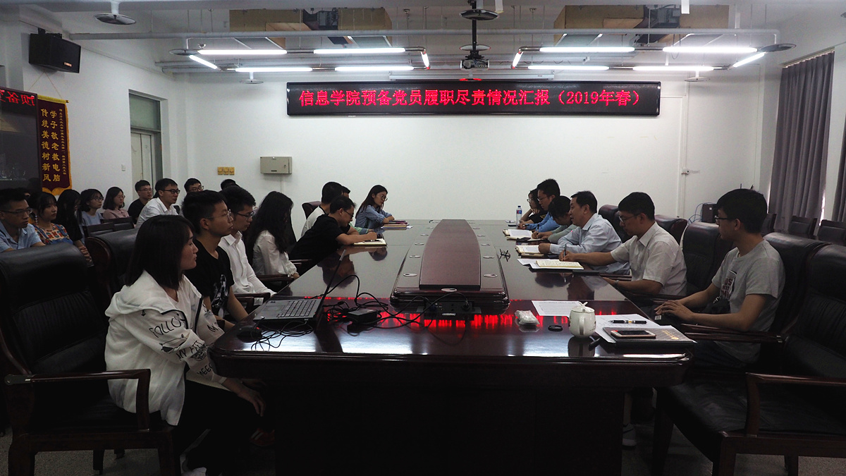 为加强对预备党员的教育和管理,综合考察预备党员1年预备期先锋模范作用的发挥,信息学院党委于5月14日下午在瀚学楼1014会议室召开了“预备党员履职尽责情况汇报会”。会议由学院党委副书记陈卫主持召开。党委书记刘文楷在听取了汇报后指出,通过此次汇报,学院党委看到了预备党员在预备期的成长,大家都认真完成了“五个一”先锋工程。在思想上,能够从理论书籍的一个一个小故事中学习到优秀党员们艰苦奋斗的精神;在做法上,...