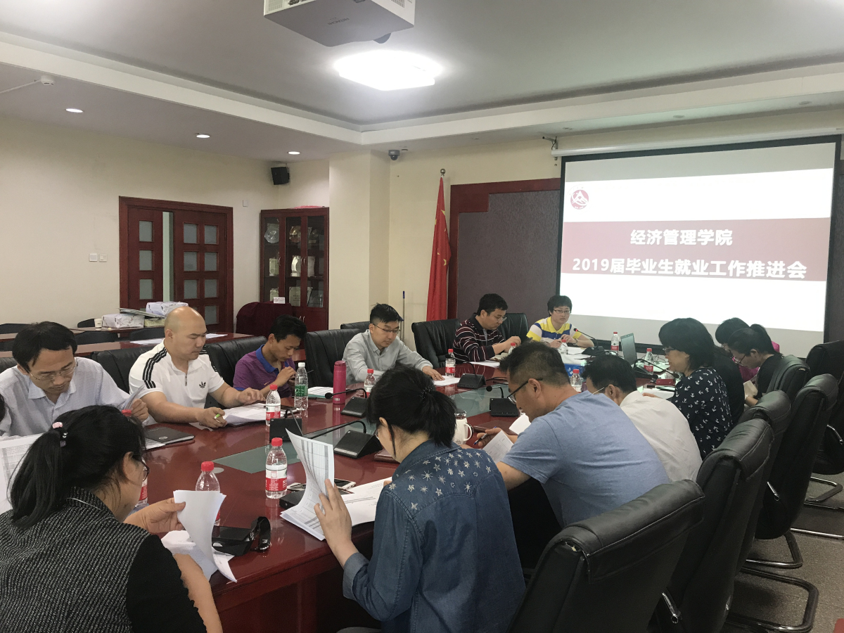 5月10日下午,经济管理学院在励学楼201会议室召开2019届毕业生就业工作推进会,学院全体领导班子成员、各系主任、全体毕业班导师、辅导员出席了此次会议。会上,各班导师分别汇报了班级学生目前就业情况,就工作中的困难进行了交流和探讨。学院副院长陶晓波和副书记赵洁分别通报了下一阶段的重点工作。学院党委书记王伟宾就如何开展就业工作同与会老师进行了交流,他希望大家明确新时代对就业工作提出的新要求,要及时转变思想...