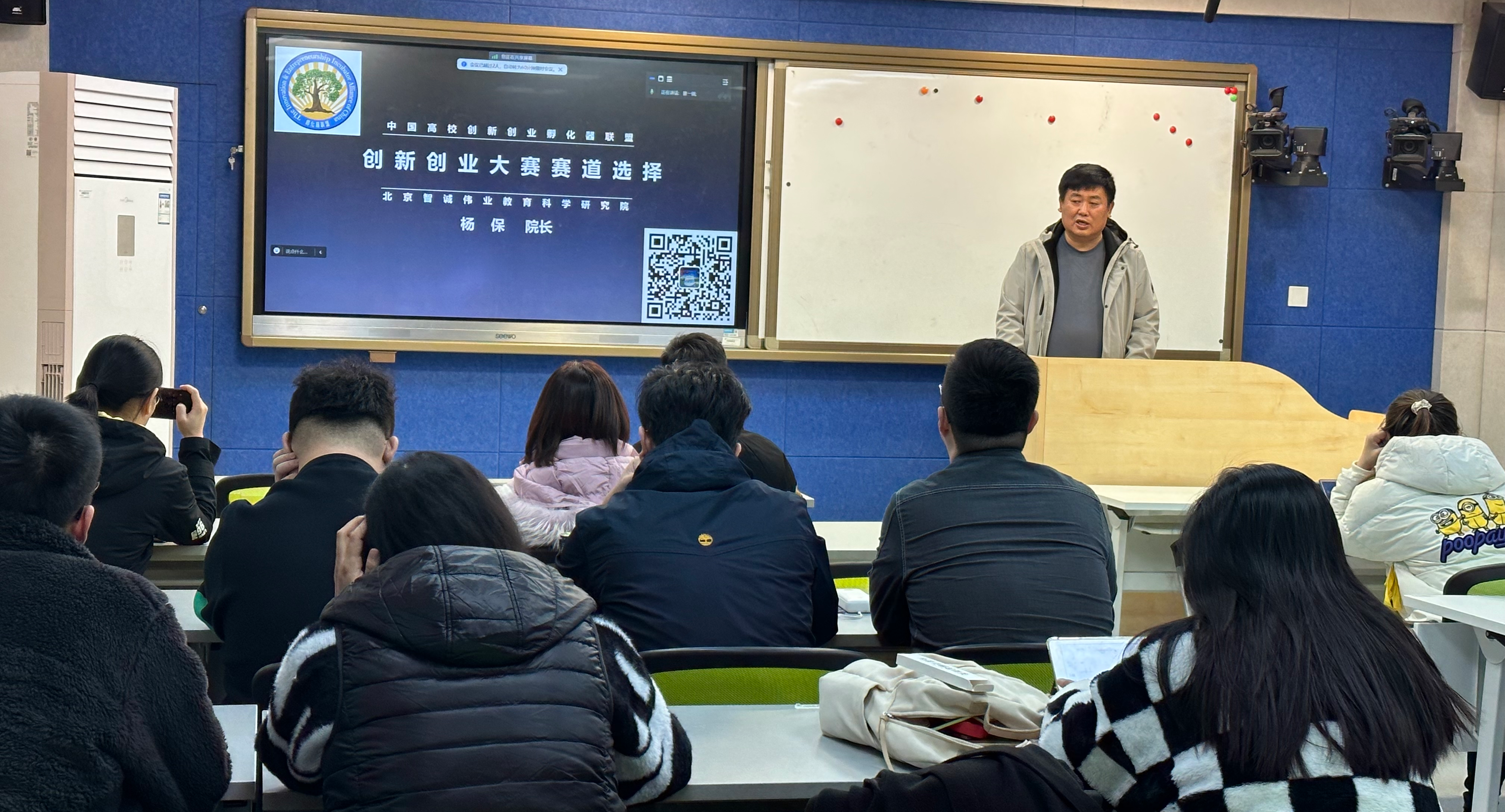 11月6日下午,经济管理学院在励学楼135教室举办了“创新创业导航”系列讲座第七讲。中播集团董事长、天使投资人、教育部高校创业指导师专家组副组长、中国高校创新创业孵化器联盟副理事长、团中央青年创业全国评审委员会执行委员、“互联网+”“挑战杯”“中国创翼”创新创业大赛国赛专家评委杨保先生以“创新创业大赛赛道选择”为题与永利官网师生开展了交流。讲座由经济管理学院创新创业基地刘冰副教授主持。杨保老师对“互联网+...