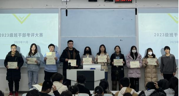 为夯实学生思想教育体系,充分发挥班干部的示范引领作用,切实提升班干部的工作能力,从而强化学生们的凝聚力以及班级班风建设,信息学院举办了“头雁领航”班级干部考评大赛。2023级电类全体学生参与活动,学院党委副书记陈卫、2021级辅导员王秀吉、田庆玥老师及2023级辅导员崔怡冉老师参与评审。大赛分为四个环节,包括看图竞猜、案例分析、个人风采展示及互动投票环节,各班班长、团支书、学习委员作为参赛代表参赛。看图竞...