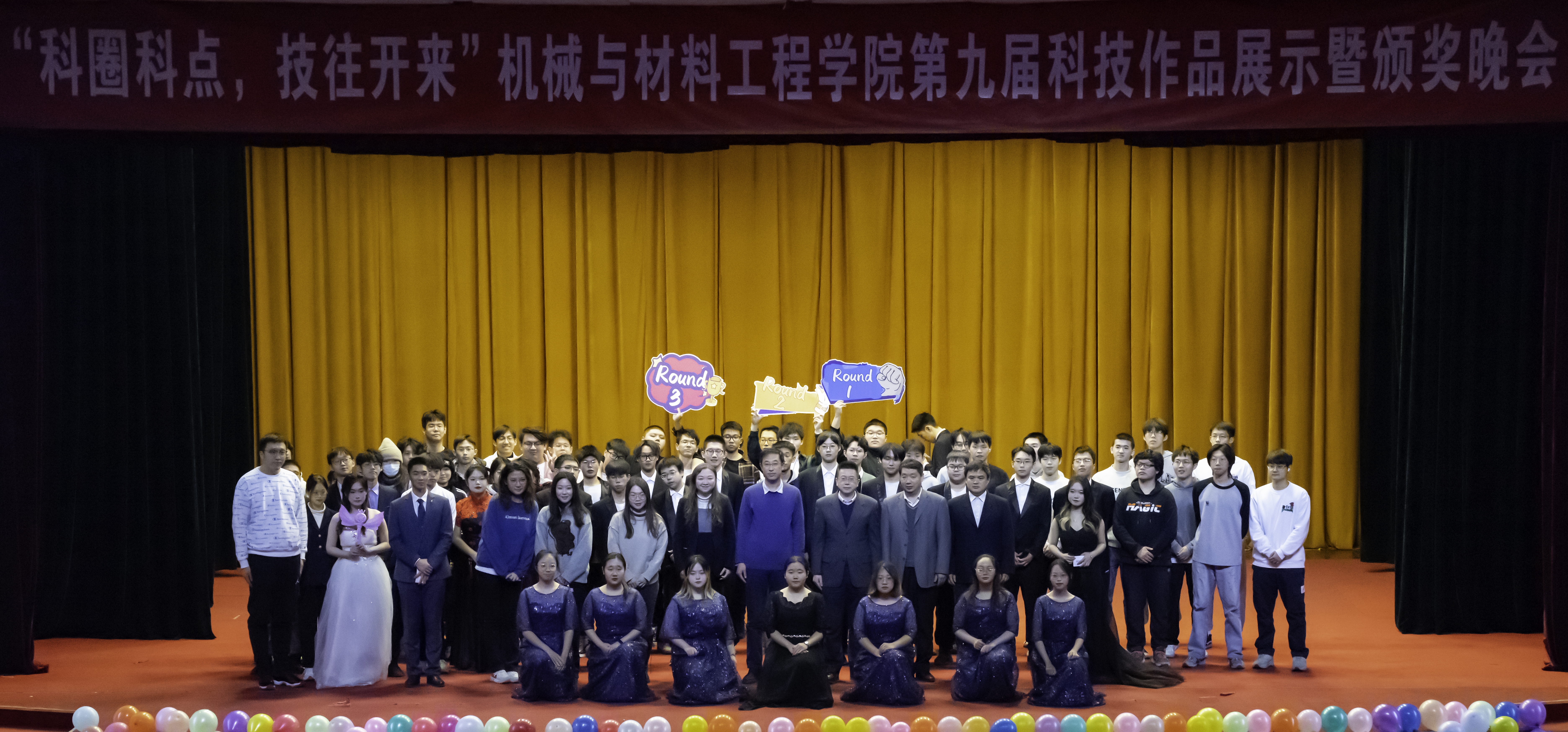 12月19日晚,“科圈科点,技往开来”——机械与材料工程学院第九届科技作品展示暨颁奖晚会在图书馆报告厅举行。400余名师生欢聚一堂,欣赏学院学生精彩的科技作品展示。晚会在动听的歌曲和充满科技感的机械舞中拉开了帷幕,CMC街舞社的同学与舞蹈机器人同台表演,展现了机材学子的青春活力。《机器人串烧》《机器螃蟹是怎样炼成的》《超级机械手、《六足机器人》四个节目通过对机器人制作过程的展示和识别并推动障碍物、抓取标...