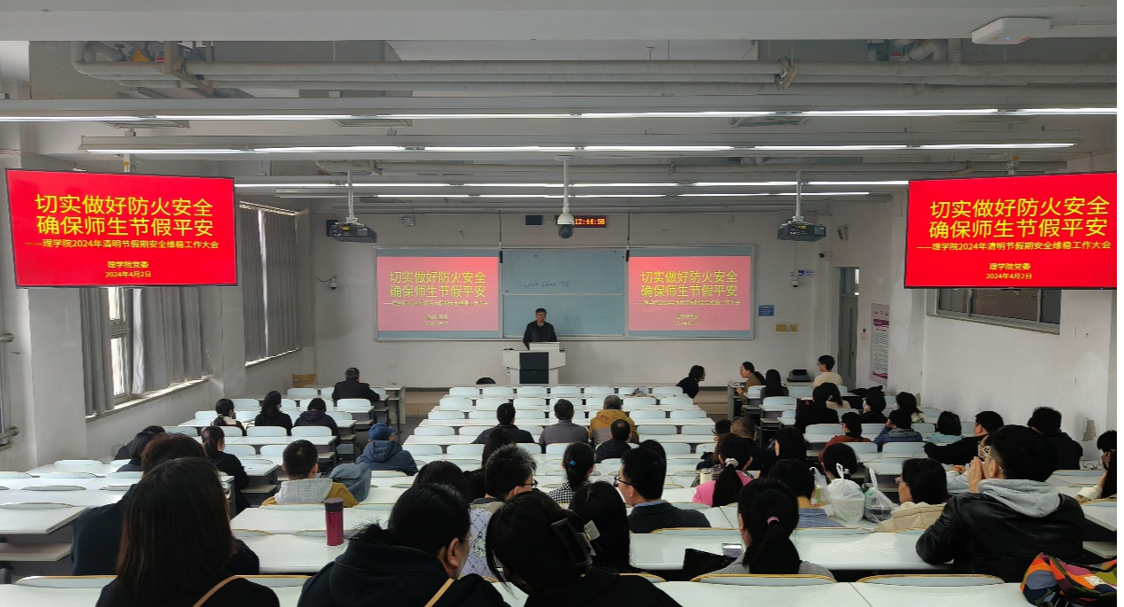 4月2日中午,理学院召开“清明”假期安全工作会议,学院全体教师参加了会议。会议由学院党委书记龚维华主持。龚维华传达了北京市和学校安全会议精神,并就清明假期期间学院安全工作做了具体安排和布置:一是全体教工要提高政治站位,高度重视安全防火工作,强化政治责任意识,树牢底线思维,明确责任,层级管理。系主任、责任教授,支部书记,班导师,辅导员要高度重视假“清明”期间消防安全工作,加强领导,各负其责。二是各...