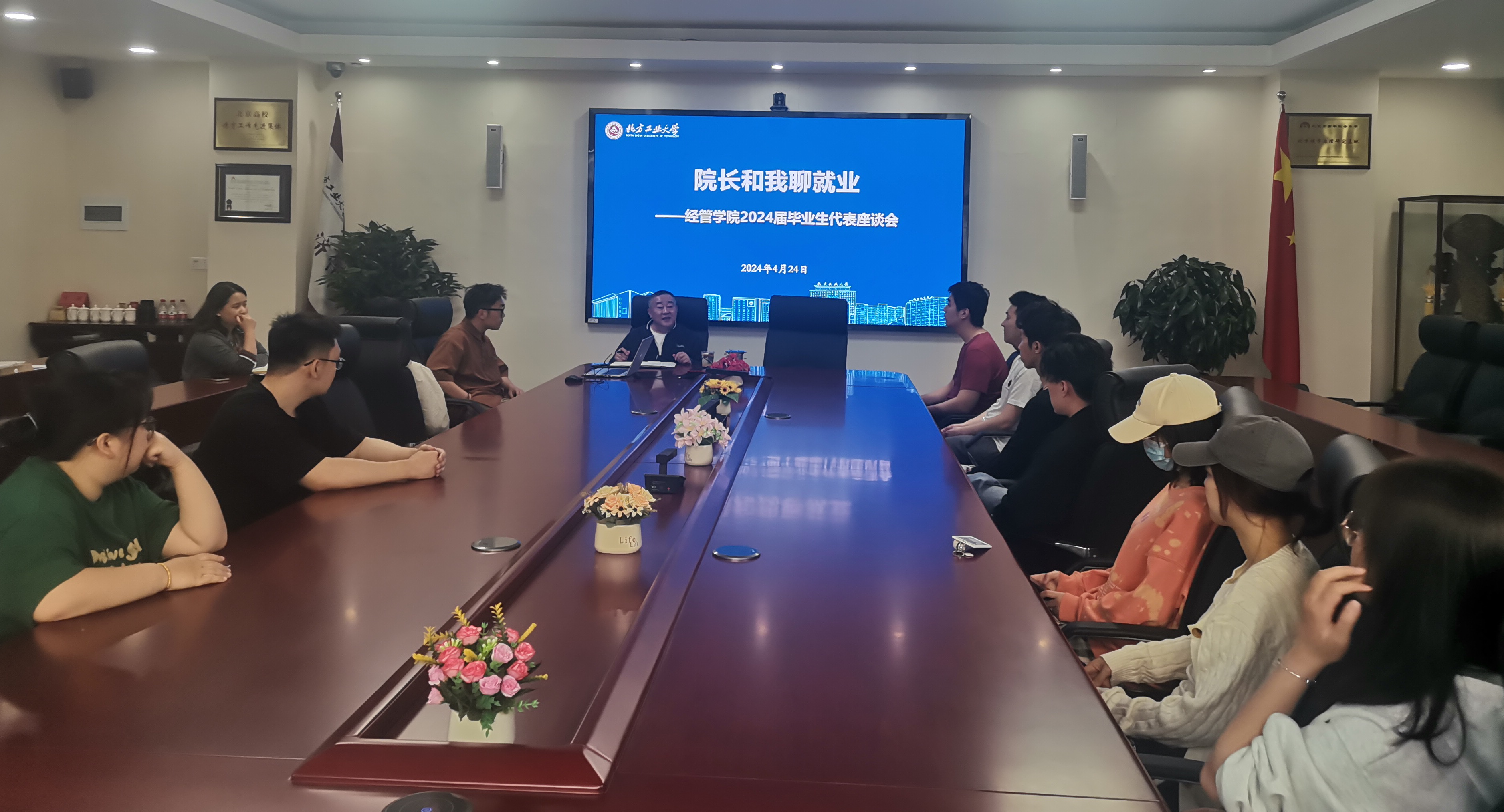 为深入推进学院2024届毕业生就业工作,了解学生需求,帮助学生树立正确就业观,精准服务学生就业,4月24日下午。经济管理学院在励学楼201会议室召开“院长和我聊就业”——毕业生代表就业座谈会。学院院长赵继新,党委副书记王帏,辅导员吴芳、张泽圣以及20余名毕业生参加活动。座谈会在热烈愉快的氛围中进行。同学们纷纷畅所欲言,介绍了自己的就业进展情况,并表达了在求职就业过程中的困惑与思考。赵继新逐一解答了同学们提...