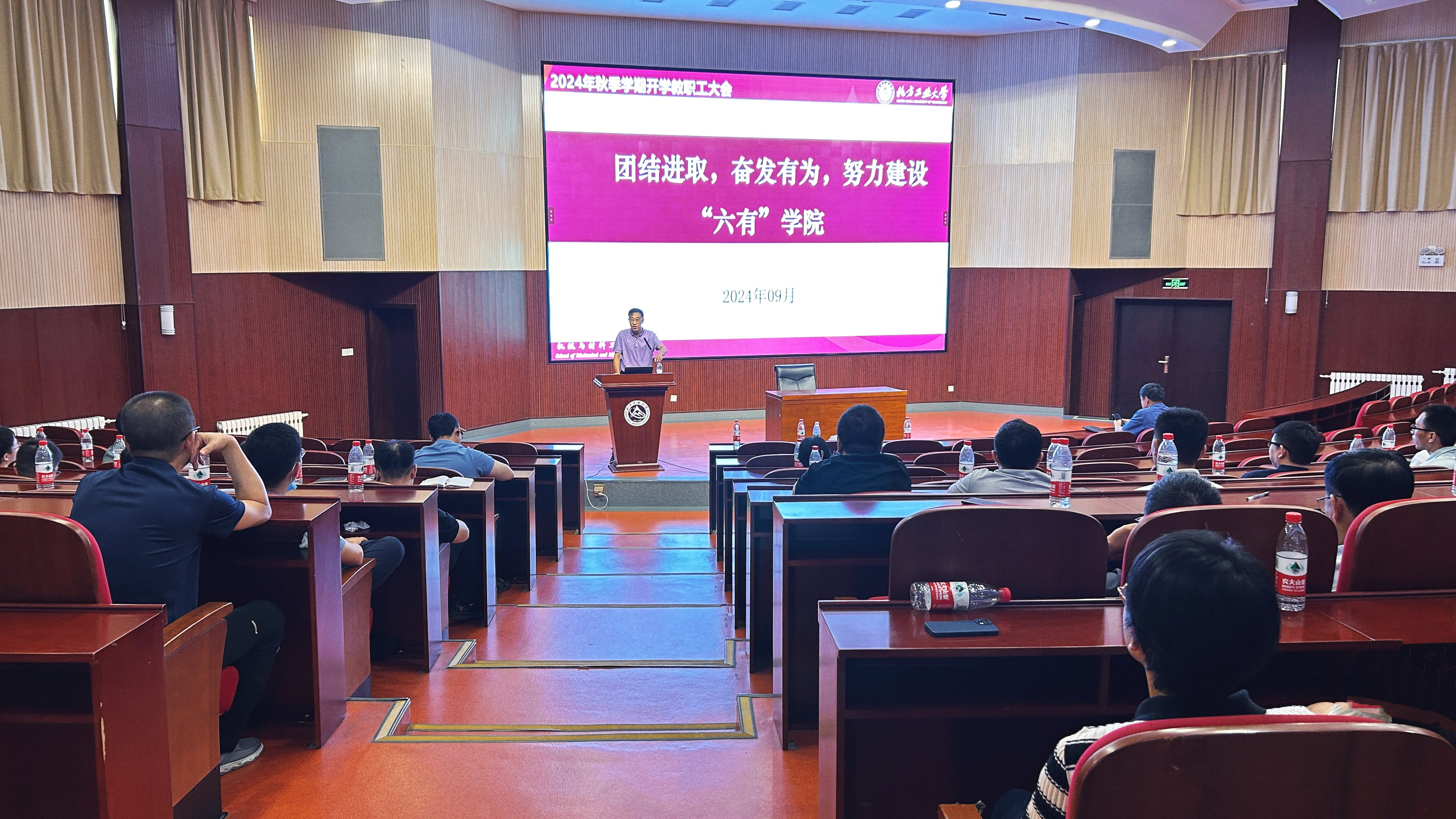9月2日上午,机械与材料工程学院在文化会堂举行新学期全体教职工大会,总结汇报前期工作,部署安排新学期工作。全体教职工参加了会议。学院党委书记王文革以“党建引领、积极作为,努力推进样板建设”为主题向全体教职工报告了学院2024年党建思政工作。2024年,学院党委围绕立德树人根本任务,积极开展各项基层党建工作,圆满召开学院党员大会,认真开展党纪学习教育,深入推进“一支部一特色”;围绕样板建设,开展有组织的教...