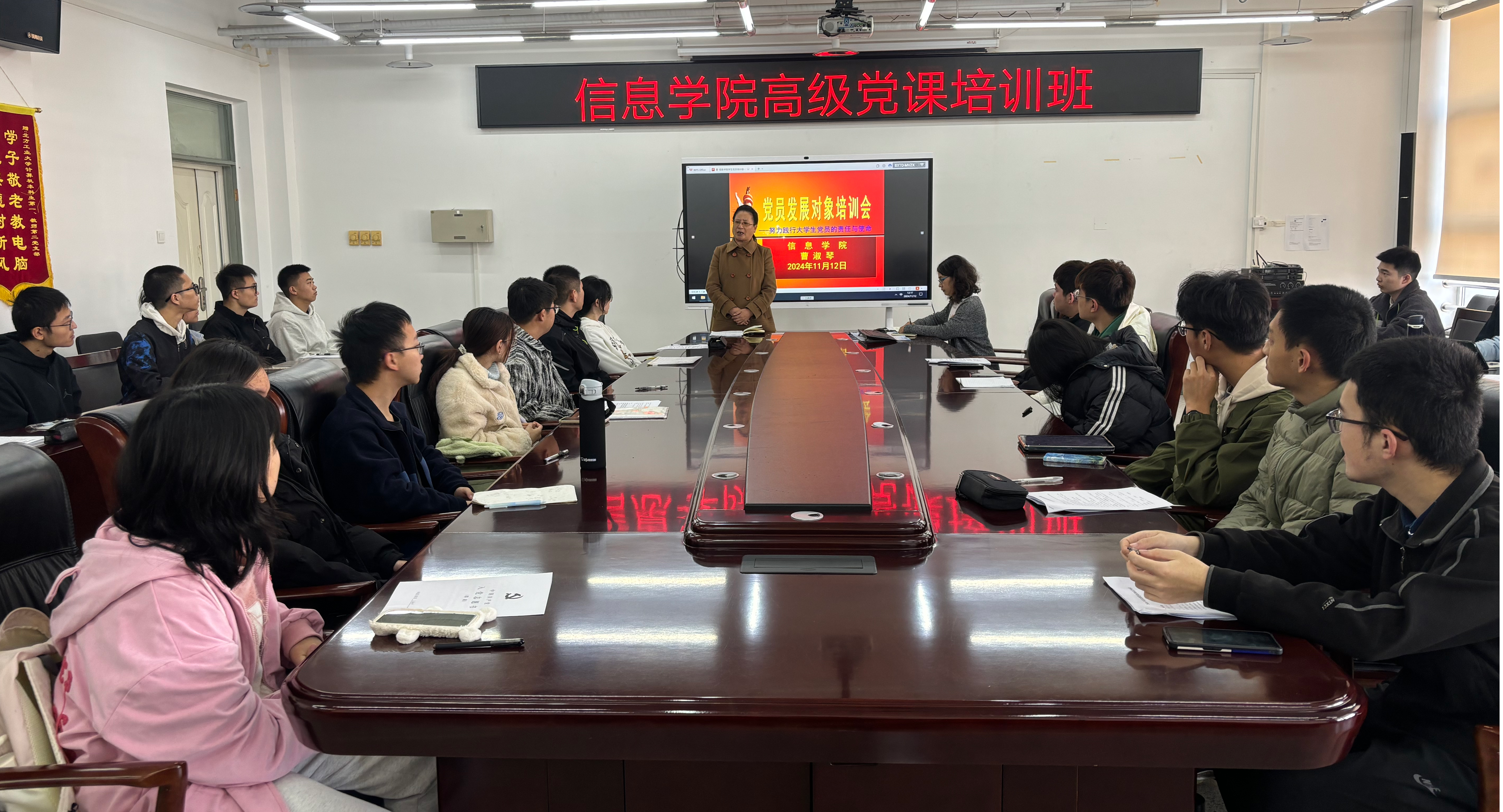 为进一步提升发展对象的党性觉悟和政治素养,从源头上把好党员“入口关”“质量关”,11月12日,信息学院在瀚学楼1014会议室开展党课高级班暨发展党员培训会。邀请学院特邀党建组织员退休干部曹淑琴老师主讲,学院本科、研究生全体发展对象参加培训。曹淑琴老师主要从入党动机以及入党后应该怎么去做两个方面给大家上了一堂党课。谈到入党动机,曹老师结合优秀前辈、身边党员和自身经历,与大家探讨什么是正确的入党动机,鼓励...