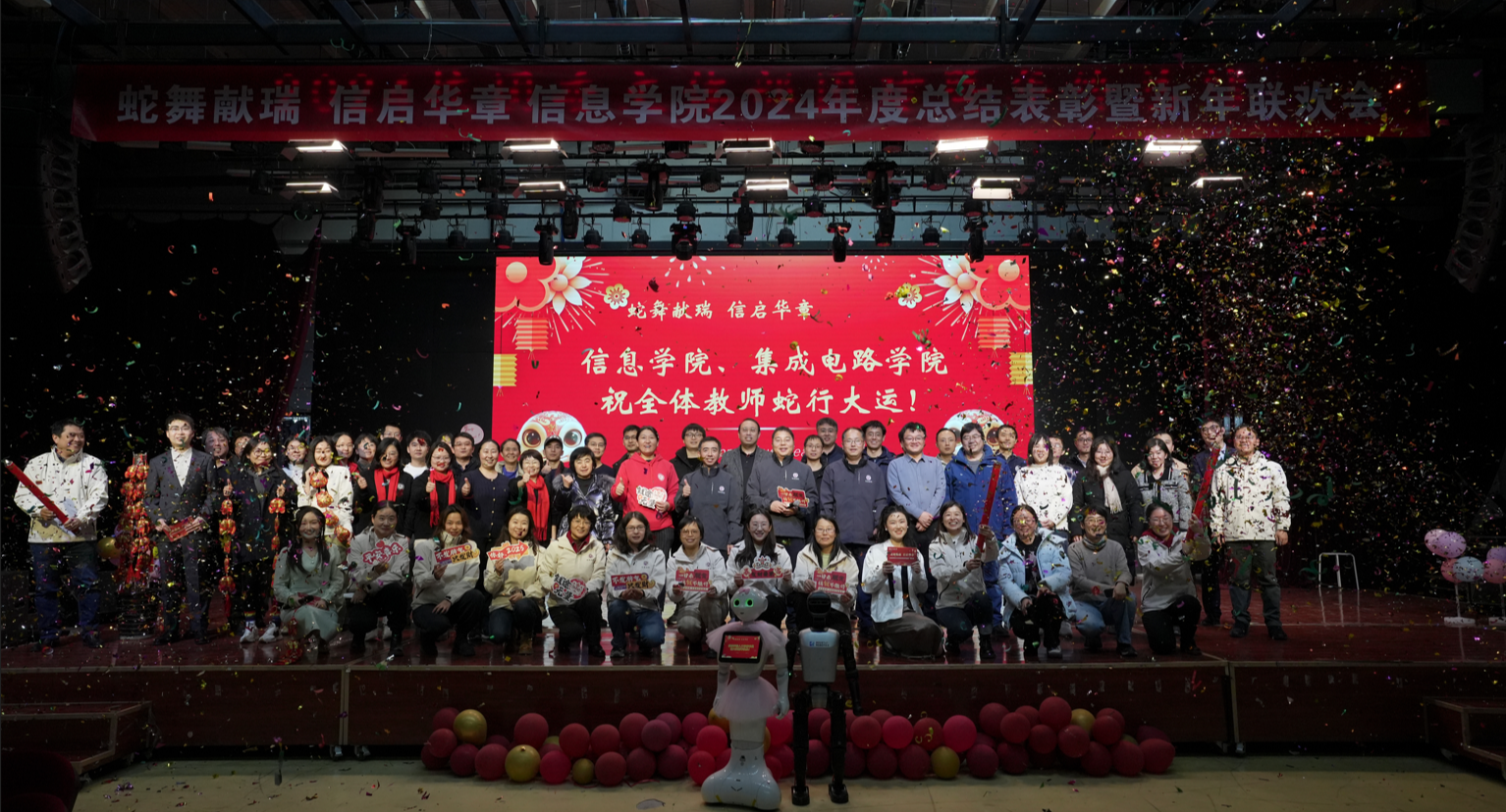 2025金蛇贺岁,辞旧迎新之际,1月2日下午,信息学院2024年度工作总结表彰大会暨“蛇舞献瑞信启华章”2025年迎新联欢会在学生服务楼四层隆重举行。校党委副书记史贞军致新年贺辞。他代表学校向全院教师送去新春的祝福,并对一年来全体教职工为学校各项工作的辛勤付出表示感谢。他勉励大家新的一年要齐心协力,锚定目标,奋勇争先,落实好学校的各项决策部署,为学校高水平应用型大学建设做出自己应有的贡献。学院院长马礼作2024...