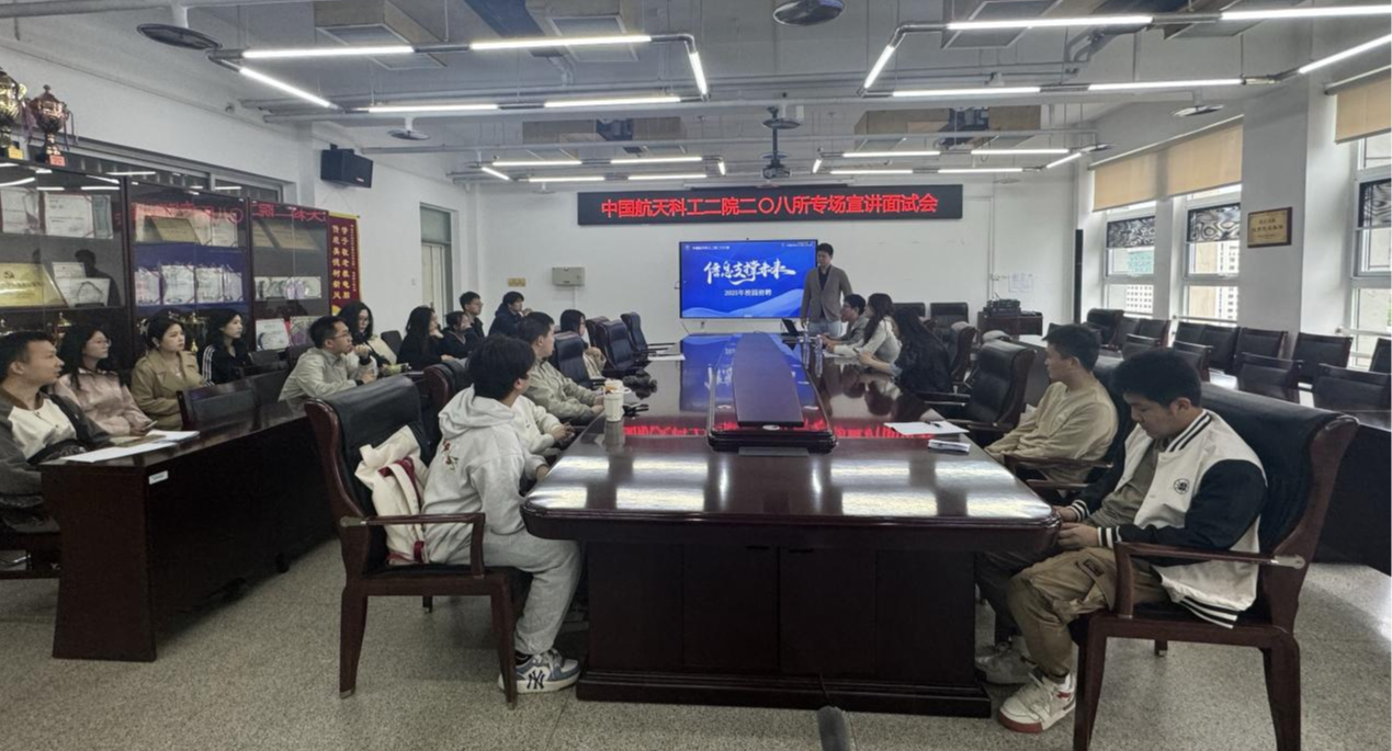 为全力助推信息学院2025届毕业生逐梦职场,4月18日上午,中国航天科工二院二〇八所应邀来校举办专场宣讲招聘会。二〇八所人力资源部HR孙浩天老师携四名技术部门工程师组成招聘团队,为计算机、大数据、通信工程等专业50余名毕业生面对面开展专场宣讲。活动现场,招聘负责人向同学们详细介绍了企业发展历程、前沿业务、雄厚科研实力与独特企业文化。作为航天领域的中流砥柱,二〇八所的卓越成就让同学们对未来职业发展充满了憧憬...