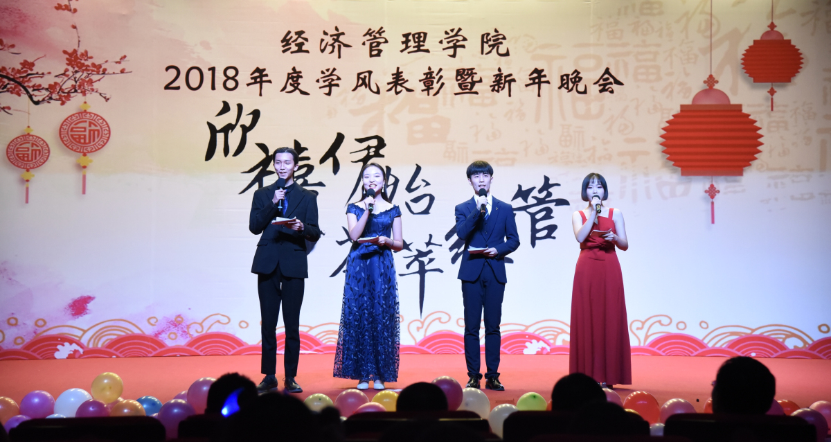 12月18日晚,经济管理学院在图书馆报告厅举办“欣禧伊始 荟萃经管”2018年度学风表彰暨新年晚会。学生工作部部长高国伟、校团委书记何有华、学生工作部副部长赵帅、经济管理学院全体领导班子成员、各系主任、班导师、辅导员及600余名同学共同参加了本次晚会。晚会现场,院长赵继新老师向学院全体师生送出了新年寄语,他对大家一年来的表现给予了肯定,表示大家在学校党委的正确领导下,经历了忙碌,也收获了成绩。成绩的取得离...