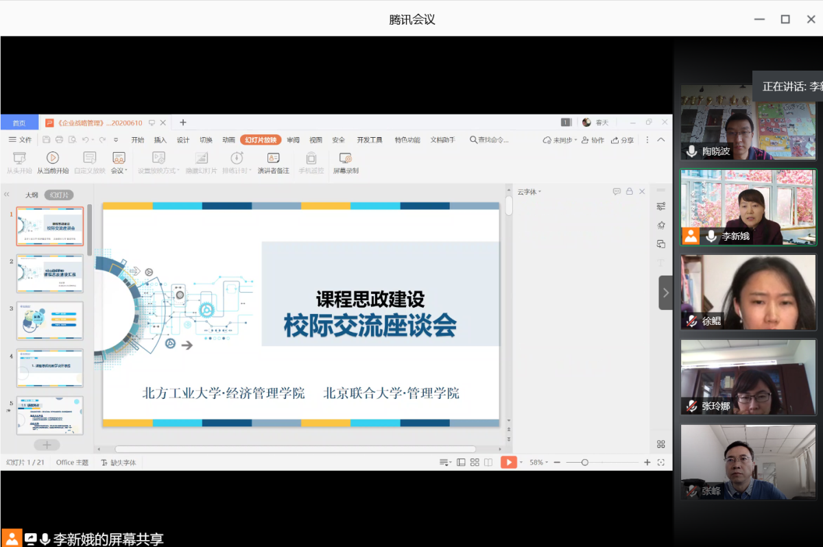 6月10日下午,为进一步推进课程思政建设工作,经管学院与北京联合大学管理学院开展了课程思政建设线上交流座谈。在学院党政联席会安排部署下,陶晓波、郝凯、罗文豪三位教师作为代表,参加了此次线上交流座谈。北京联合大学管理学院李新娥、詹细明等几位老师结合自己的教学过程,分享了课程思政如何体系化融入专业课程的心得体会。永利官网郝凯老师和罗文豪老师分别以《基于H-O模型理解中美贸易战》和《激励的公平理论》为例,进行...