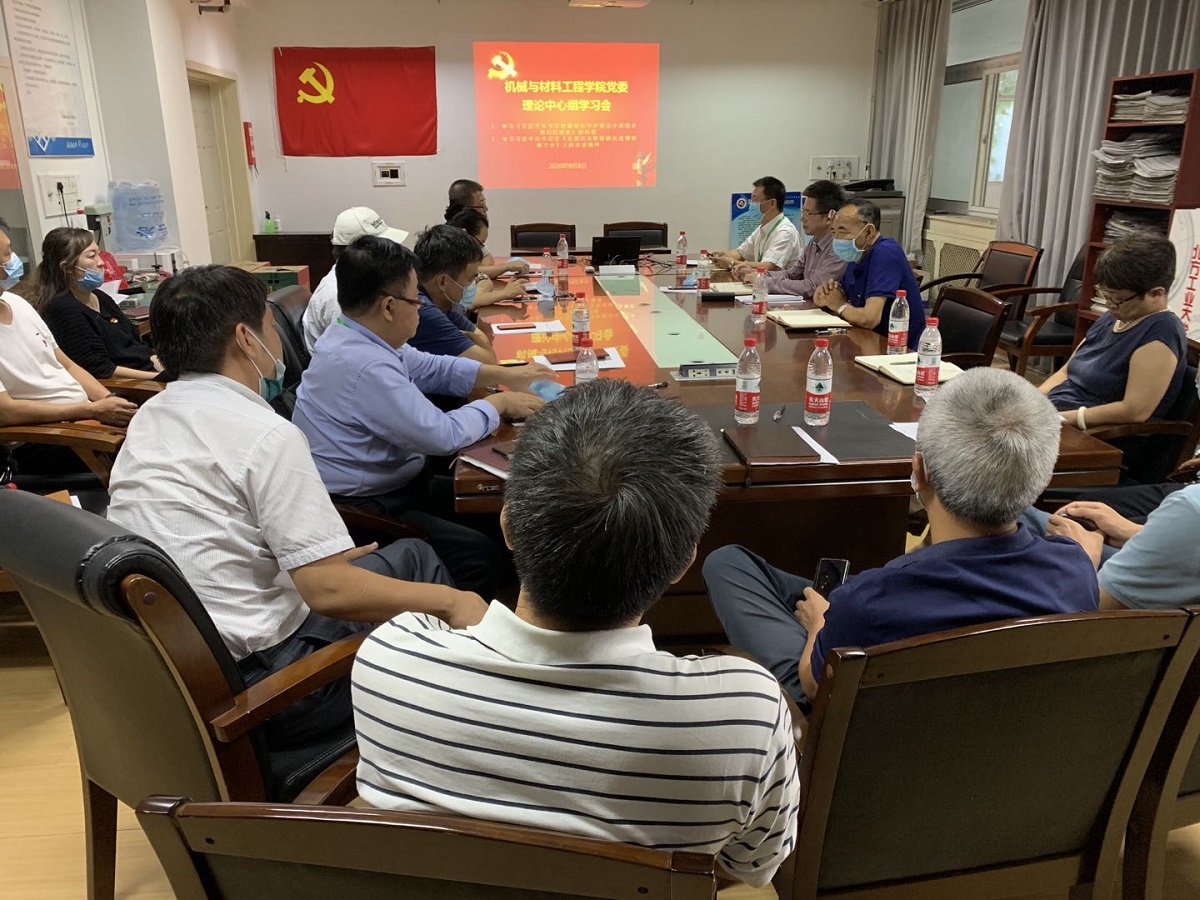 9月8日下午,机械与材料工程学院党委理论学习中心组学习会在博才楼203室召开。学院班子成员、党委委员、系/中心主任、责任教授、工程中心主任以及有关责任教师参加了集中学习。会议由院党委书记王文革主持。 学习会认真学习了习近平总书记在全国抗击新冠肺炎疫情表彰大会上的讲话。习近平总书记在讲话中指出:我们坚持人民至上、生命至上,以坚定果敢的勇气和坚韧不拔的决心,同时间赛跑、与病魔较量,迅速打响疫情防...