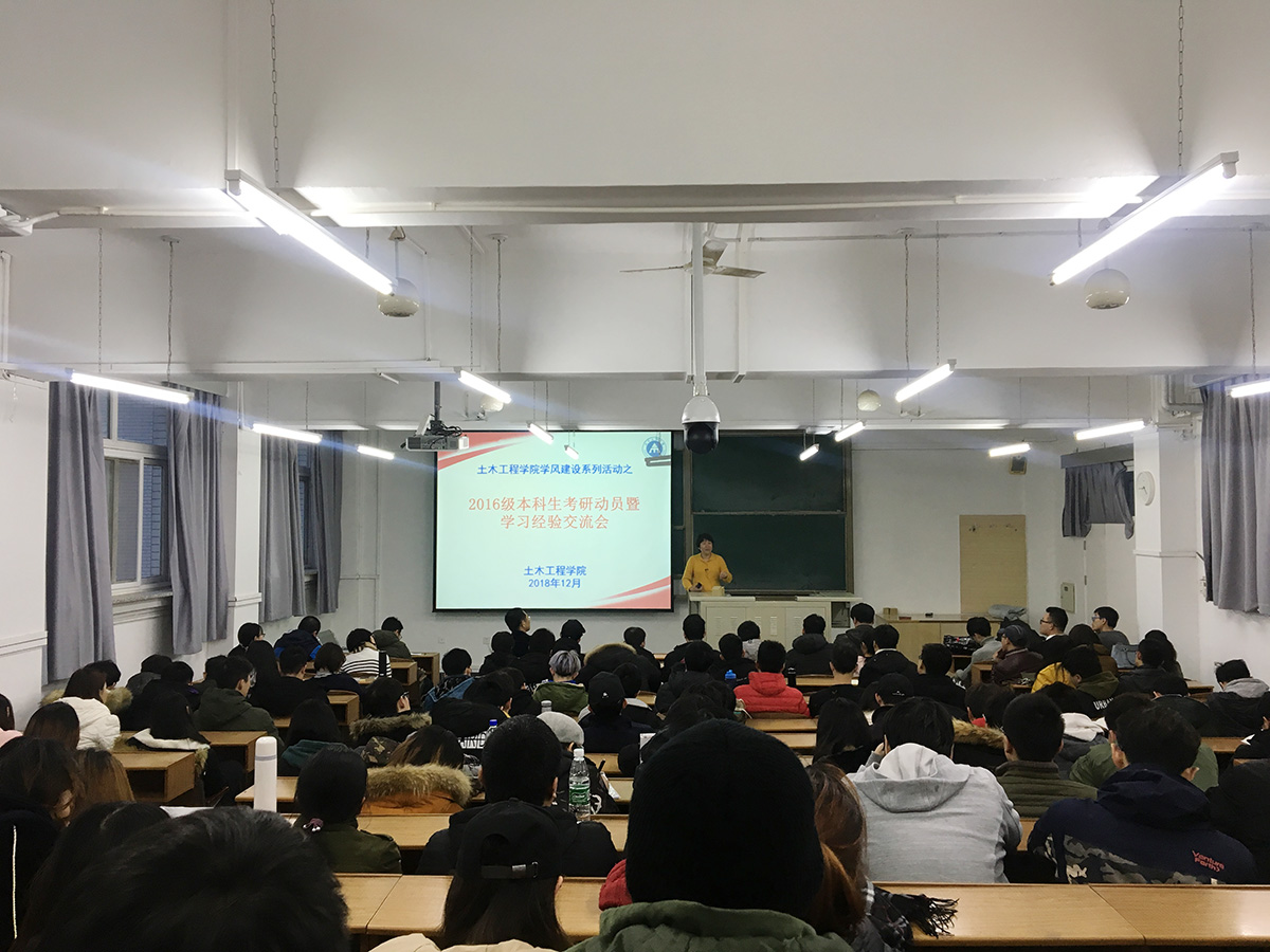 为了进一步加强学院学风建设,指导学生做好学业及职业规划,土木工程学院于12月20日,在励学楼424教室,召开2016级本科生学风建设暨考研动员会。院系负责人、辅导员、班导师以及2016级全体学生参加了大会。会议由学院党委副书记张少波主持。院长纪颖波结合自身的学习、工作和专业发展经历,分享了她对大学生未来职业规划和考研深造的认识,并从行业前沿发展方向、个人发展平台拓宽、信心塑造、专业能力提升等方面解读了本科生进...