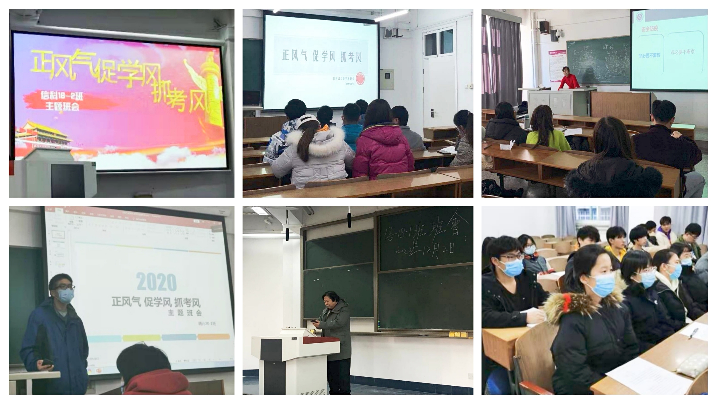 近日,随着国家英语四六级考试、研究生招生考试、期末考试的临近,理学院组织所有本科班级分别召开了“正风气、促学风、抓考风”主题班会。班会由各班班导师主持。会上,各班导师进行了党风廉洁和坚决制止餐饮浪费行为的宣传教育;带领班级同学集中学习了《304永利集团官网入口学生违纪处分规定》中关于考试违纪相关章节,组织同学们填写了《诚信考试承诺书》,要求同学们在接下来的各类考试中,遵规守纪、积极应试、诚信备考。针...
