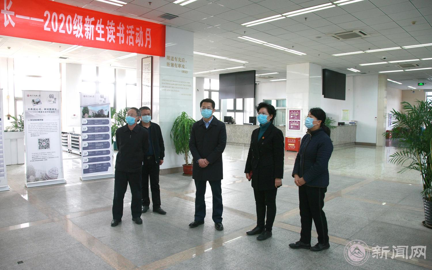 在图书馆,缪劲翔书记细致询问了开闭馆情况、疫情防控措施及阅览室的升级改造情况。他饶有兴致地了解了图书馆开发的“不占座小程序”,检查了图书馆阅览机房,并就做好图书馆的防火、防水等工作提出要求。