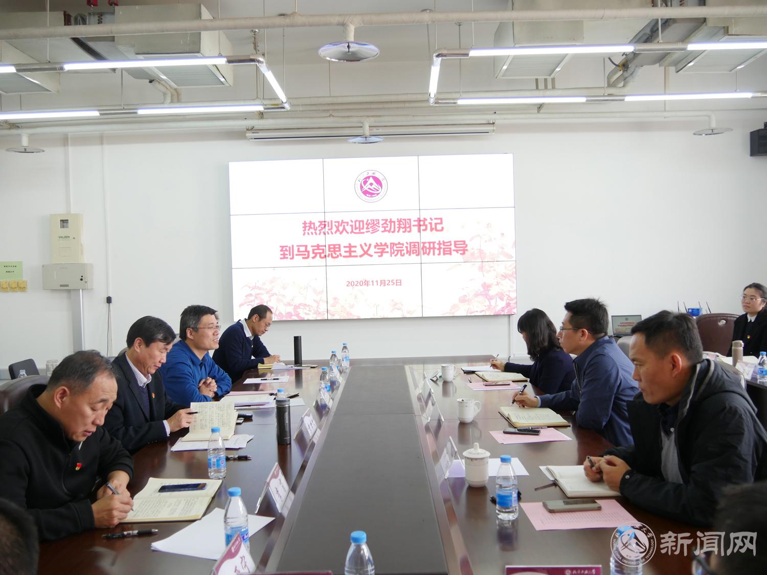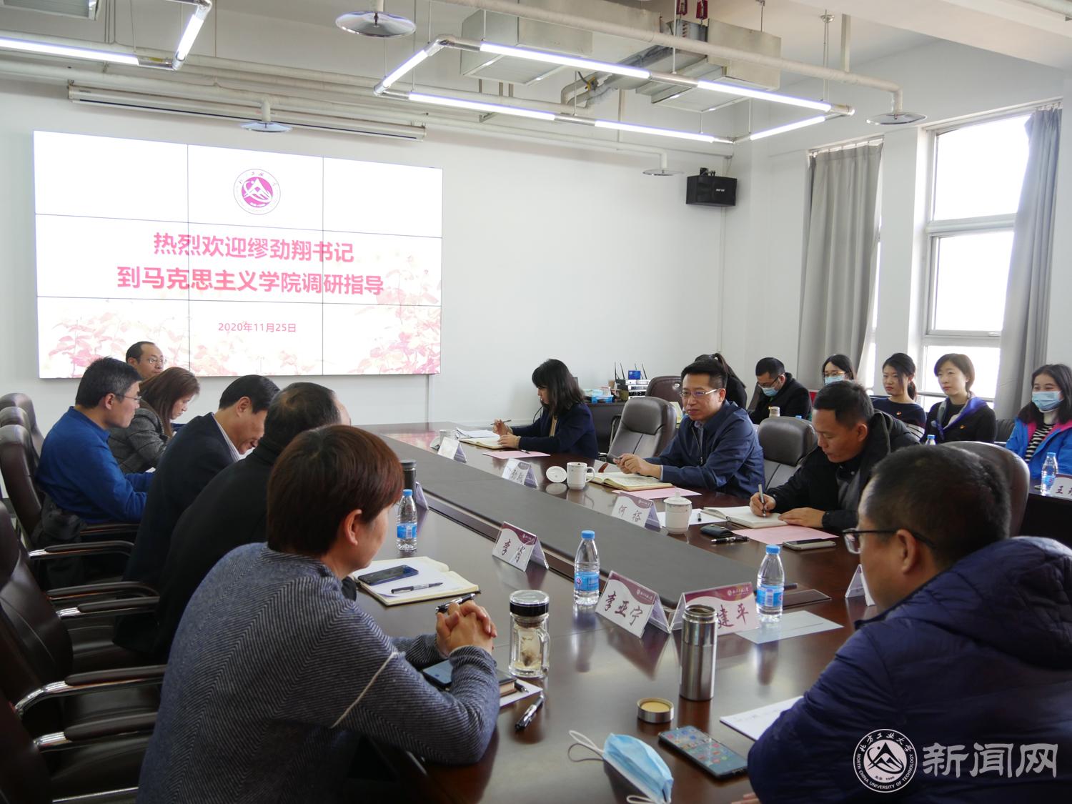 11月25日上午,党委书记缪劲翔到马克思主义学院调研,专题听取了马院和思政课建设情况汇报,并与全体思政课教师进行了深入沟通交流。