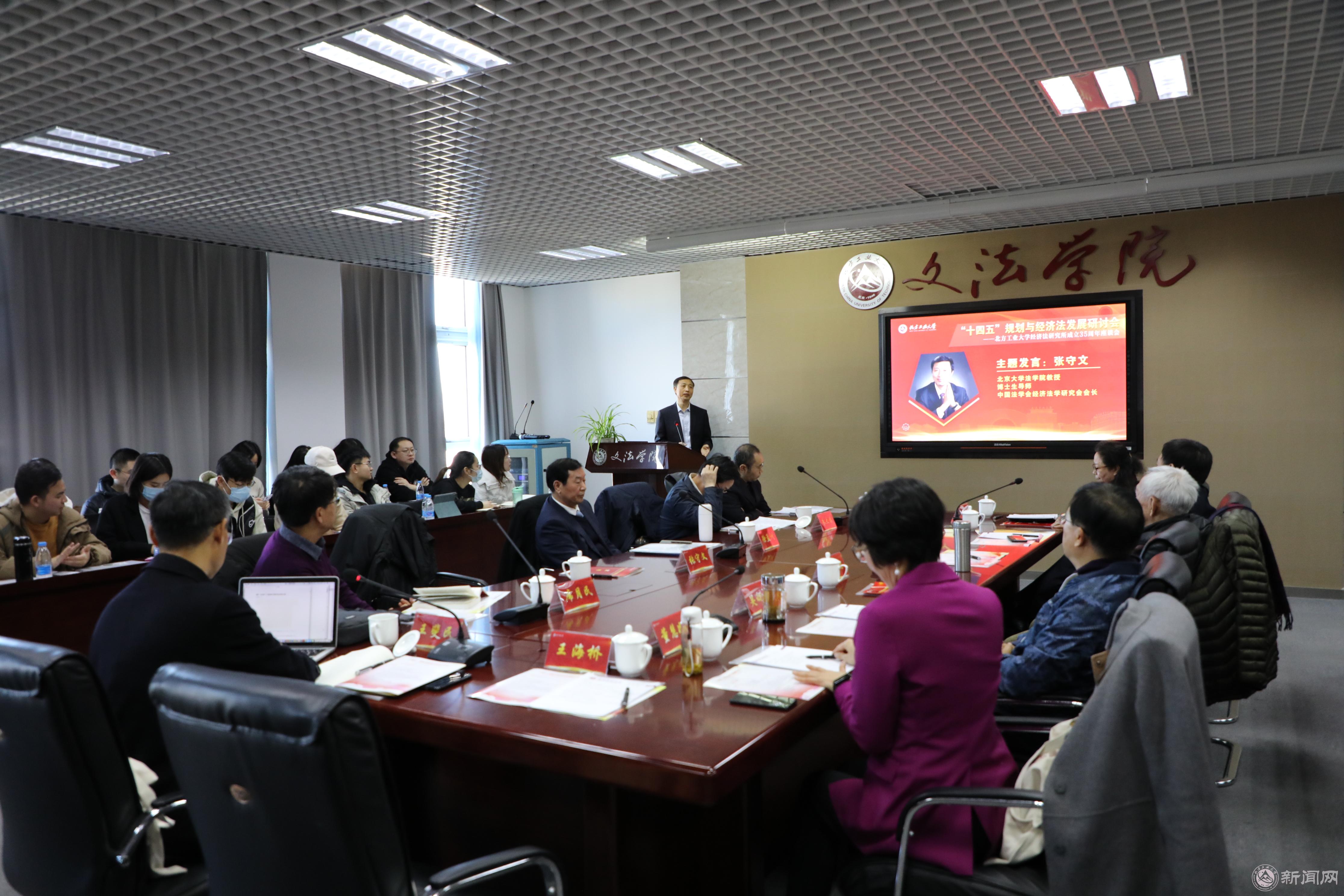 12月4日,“十四五”规划与经济法发展研讨会暨304永利集团官网入口经济法研究所成立35周年座谈会在瀚学楼710召开。副校长王建稳,文法学院院长、教授刘泽军,经济法研究所原所长、教授张士元,北京大学法学院教授、中国法学会经济法学研究会会长张守文,中国人民大学法学院教授、304永利集团官网入口客座教授徐孟洲,中国人民大学法学院教授、北京市经济法学会会长朱大旗,中国社会科学院法学所教授、中国社科院法学所经济法室主任席月民,首都经贸大学法学院院长、教授张世君,经济法研究所所长、教授董慧凝,法律系系主任、教授王海桥及部分法律系教师、研究生40多人参加了本次研讨会。