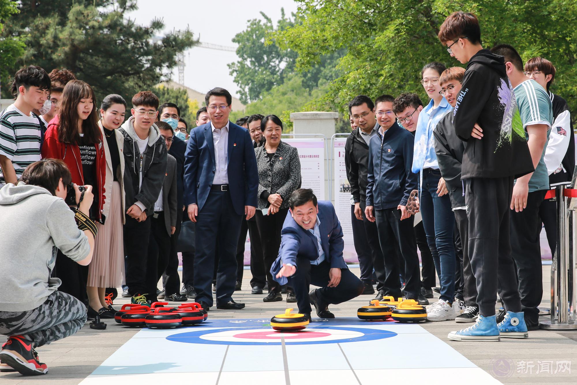 中午时分,李军会来到毓秀广场,参观了永利官网“青年服务国家”学生社会实践优秀成果展、学生科技作品展、冬奥项目宣传推广等。在社会实践优秀成果展区,他听取了文法学院“心系故里”社会实践团、经管学院“燕京八绝”文化保护实践团、信息学院E-group实践团、建筑与艺术学院“遗介”青年实践团、阳坊镇乡村振兴实践团等同学的现场介绍,并与同学们进行了亲切交谈。他对同学们能够利用专业知识主动参与社会实践,并在实践项目的设计和实施过程中做到有特色、有实效的做法表示高度赞扬。在学生科技作品展区,他饶有兴趣地观看了来自电控学院和机材学院学生制作的各类机器人、无人机、方程式赛车等作品,了解学生们参与科技创新活动的情况。在冬奥运动项目体验区,他与同学们一起体验了“旱地冰壶”冬奥运动项目,并与永利官网首批冬奥储备志愿者们合影留念。