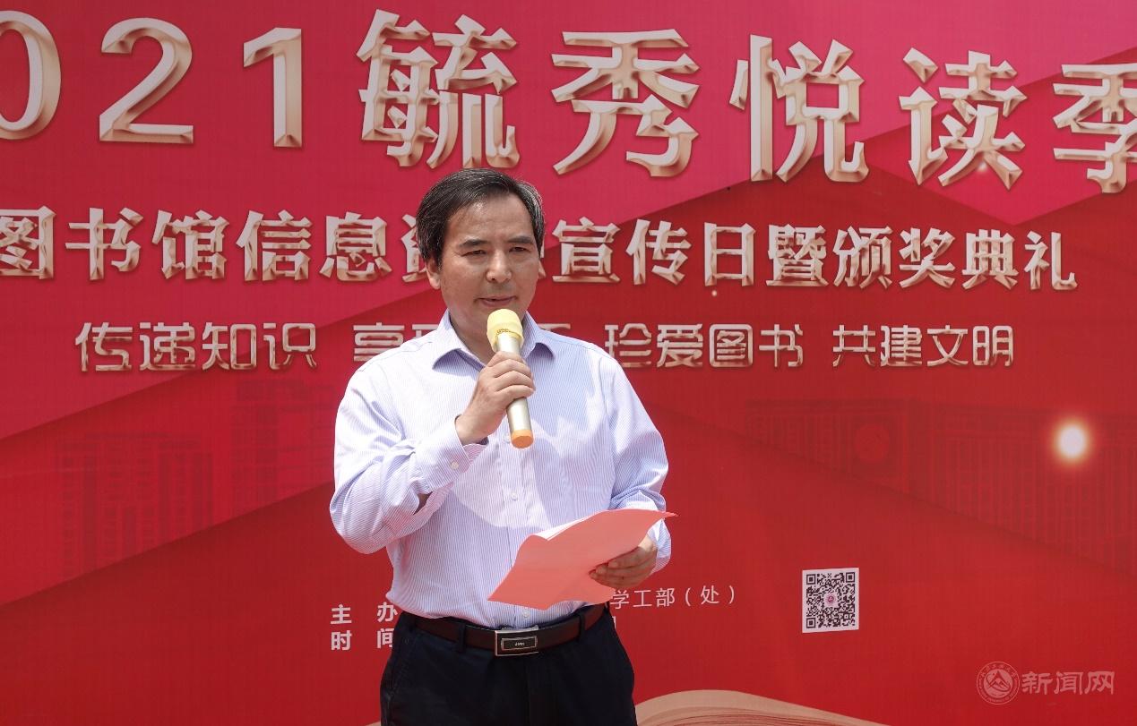 为庆祝建党100周年,弘扬红色文化,凝聚奋进力量,提升图书馆服务水平,学校于5月20日上午在毓秀广场隆重举行“2021毓秀悦读季——图书馆信息资源宣传日活动暨颁奖典礼”。校党委书记缪劲翔,副校长胡应平,党委常委、副校长王建稳,党委副书记田红芳出席,学生工作部(处)、校团委、图书馆负责人及师生代表200余人参加活动。