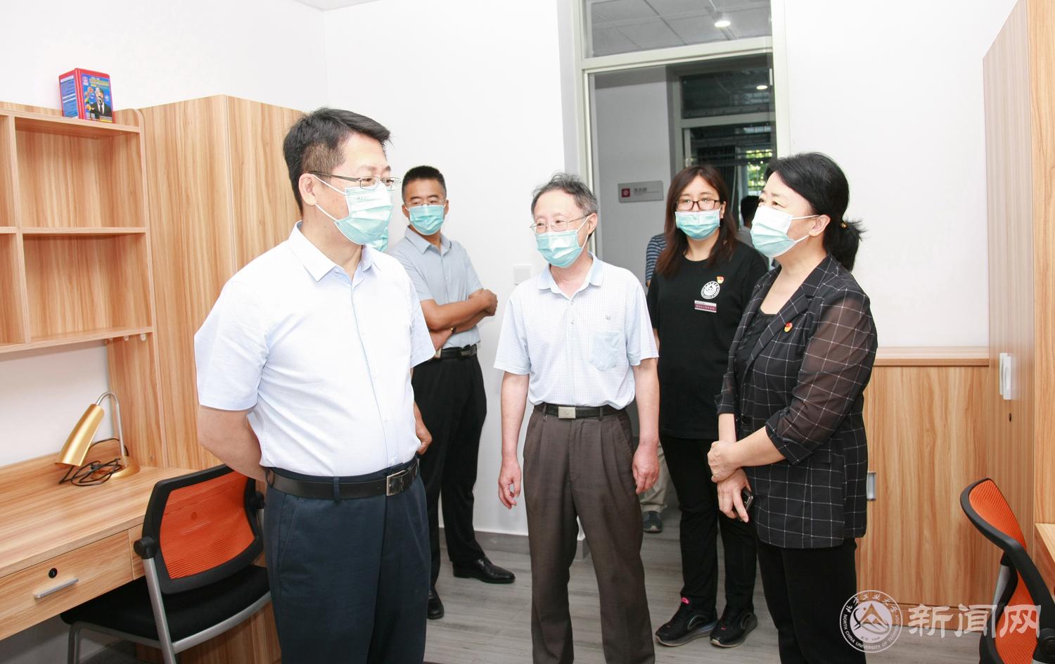 第二检查组由党委常委、副校长王建稳,党委常委、纪委书记马春成,党委常委、副校长栗苹带队,学工(研工)部、教务处、国际处、研院、网信中心等部门负责人参加。重点检查了金鼎公寓学生日常出入管理、健康监测、宿舍、餐厅、自习室通风消杀及学习生活保障准备情况,抽查教学楼、实验楼办公室、教室、实验室通风消杀及同步远程教学准备情况,图书馆入馆测温、图书借阅、环境消杀、室内防疫措施准备情况;网络保障、疫情信息溯源等情况。针对各学院反映的具体问题和各检查点存在的薄弱环节,校领导提出了整改意见,明确了整改时间节点和措施方法。