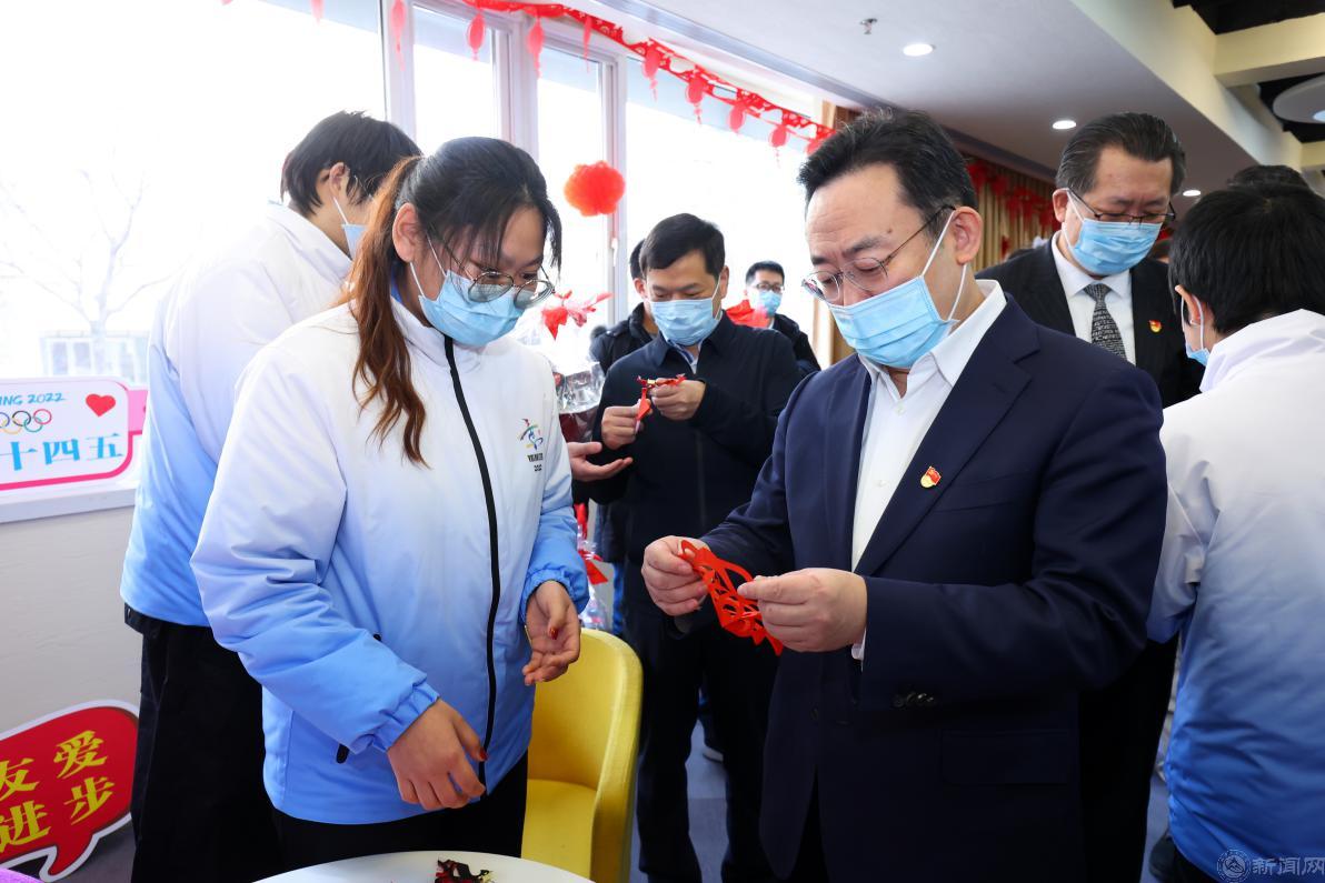 冰雪迎冬奥,寅虎贺新春。1月30日上午,在农历春节即将来临、2022年冬奥开幕倒计时5天之际,北京市委常委、教育工委书记夏林茂来到永利官网慰问冬奥志愿者,检查指导学校疫情防控、安全稳定和假期生活服务保障工作。市委教育工委常务副书记郑吉春,团市委书记李军会,市委教育工委副书记李军锋,冬奥组委志愿者部副部长张秀峰,团市委副书记钟棉棉,校党委书记缪劲翔,校党委副书记、校长张立峰陪同慰问检查。