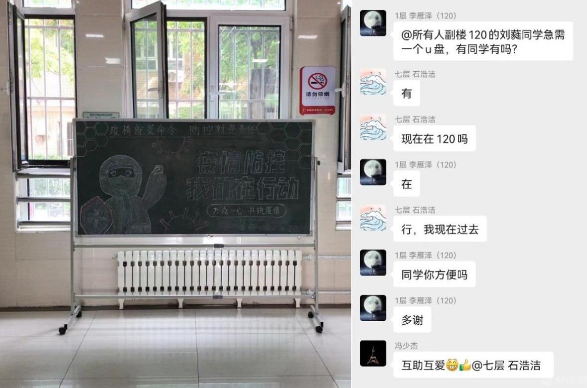 搭建信息通道,做好政策宣传,通过黑板报宣传、学生骨干走访等方式,宣传上级及学校的疫情防控政策,让同学们充分理解并做好配合管理。