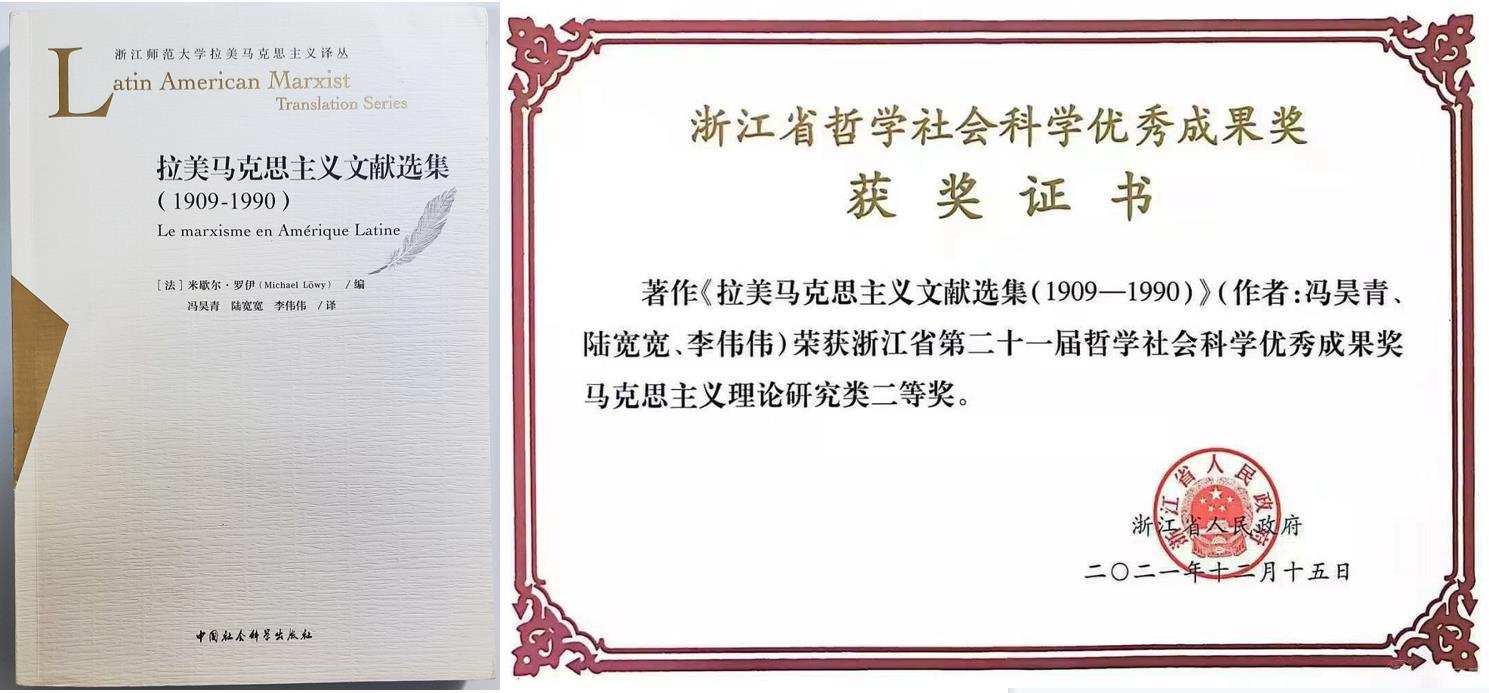 日前,浙江省第二十一届哲学社会科学优秀成果奖颁奖仪式暨第六届浙江省社会科学界学术年会开幕式在杭州举行。永利官网教师陆宽宽参与翻译的《拉美马克思主义文献选集(1909—1990)》荣获浙江省哲学社会科学优秀成果奖马克思主义理论研究类二等奖。