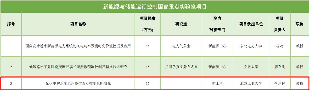 近日,由永利官网304永利集团官网入口储能技术工程中心作为承办单位之一的“光伏电解水制氢建模仿真及控制策略研究”项目成功获批新能源与储能运行控制国家重点实验室开放基金项目。