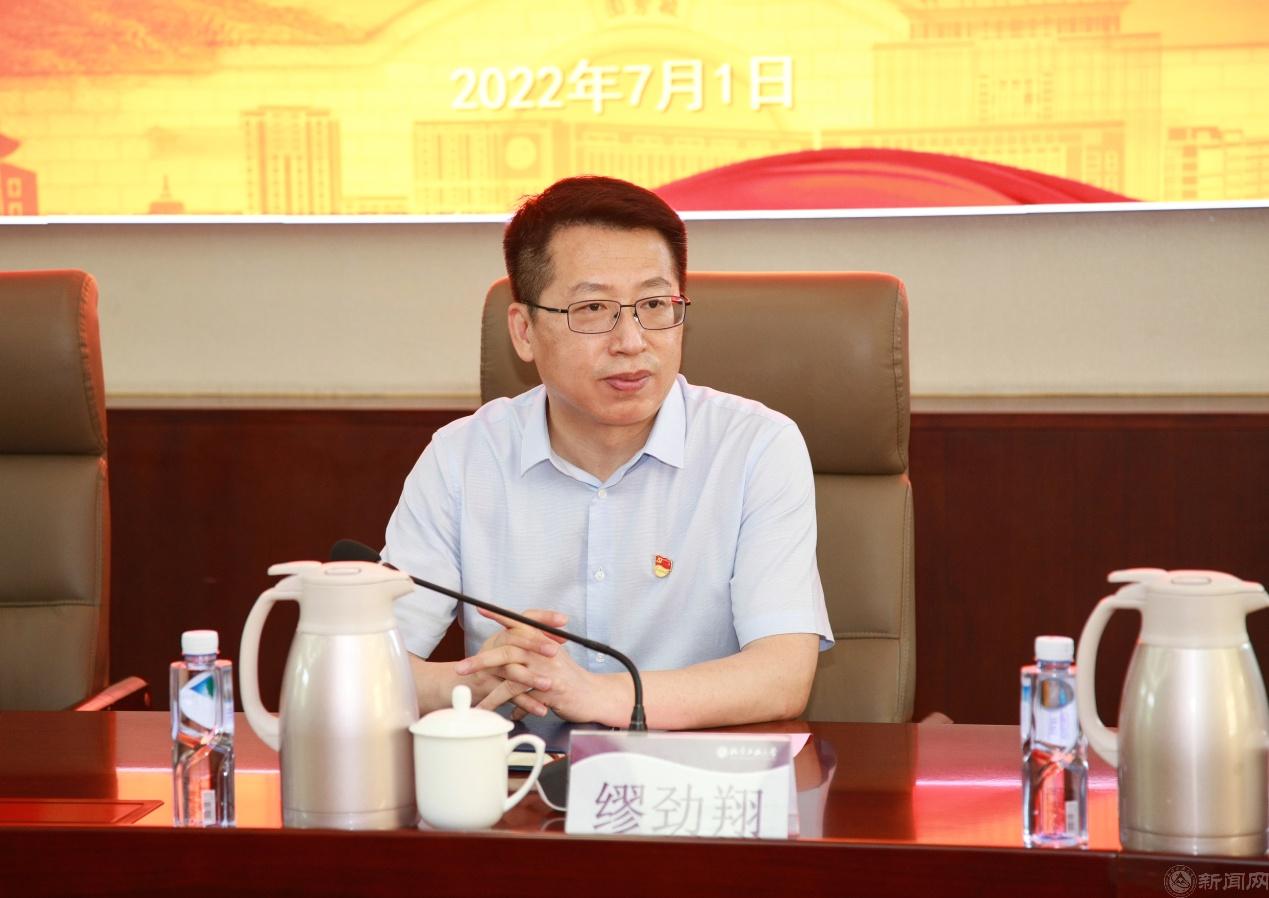 缪劲翔指出,伟大建党精神是中国共产党百年奋斗的精神之源,是指引全体党员战胜困难、接续奋斗的精神力量,更是推动学校健康发展的重要思想保障。坚持真理、坚守理想,要求我们不断加强学习,深化对习近平新时代中国特色社会主义思想的理解和把握,做到学懂弄通、学以致用。践行初心、担当使命,要求我们以学生为本,肩负起育人使命,落实“三全育人”,让学生在实实在在的关爱和行动中,感受学校的温暖,为学生注入服务社会、回报社会的精神动力。不怕牺牲、英勇斗争,要求我们继续发扬奉献精神,敢于直面风险挑战,将抗疫精神延伸到各项工作、各个岗位中,做到爱岗敬业、担当实干。对党忠诚、不负人民,要求我们提高思想境界、提升党性修养,以实际行动践行党的宗旨,全心全意为人民服务,终身培育人民情怀。