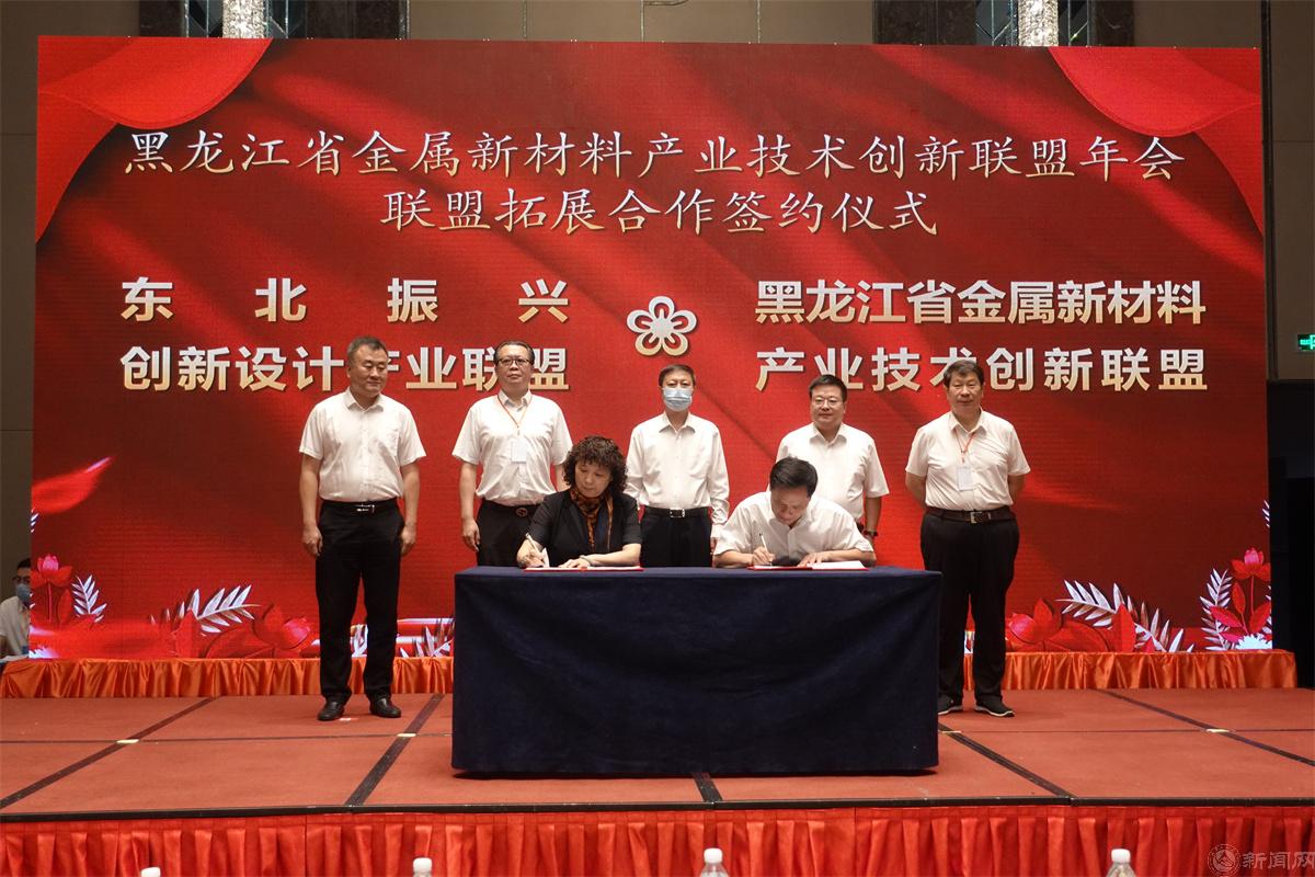 张立峰校长、石兆辉副厅长、刘刚副市长等共同见证了黑龙江省金属新材料产业联盟与东北振兴创新设计产业联盟、中国一重与中南大学、建龙北满与北京科技大学、中车齐车与大连交通大学、东盛金材与黑龙江科技大学、中车齐车与翔科新材料、齐二机床与重型铸造7项合作签约。