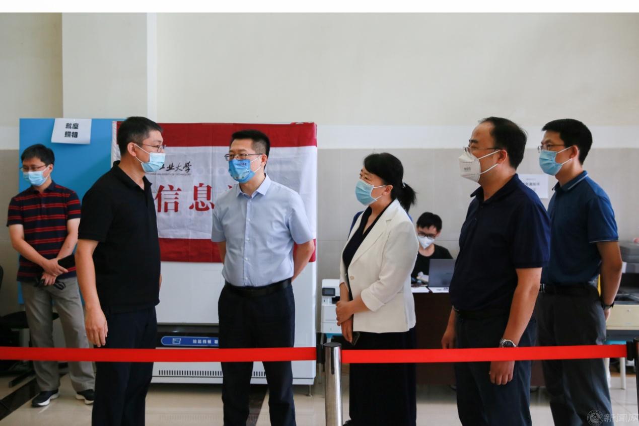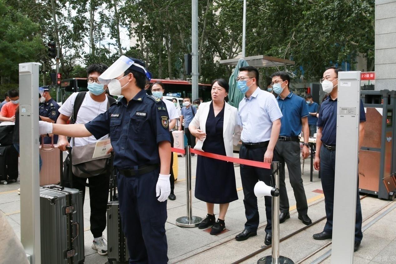党委书记缪劲翔一行首先来到校南门,详细了解新生入校检测、校园周边交通状况及现场秩序维护等情况,要求严格按照疫情防控要求,守好校门,把好师生的健康关。
