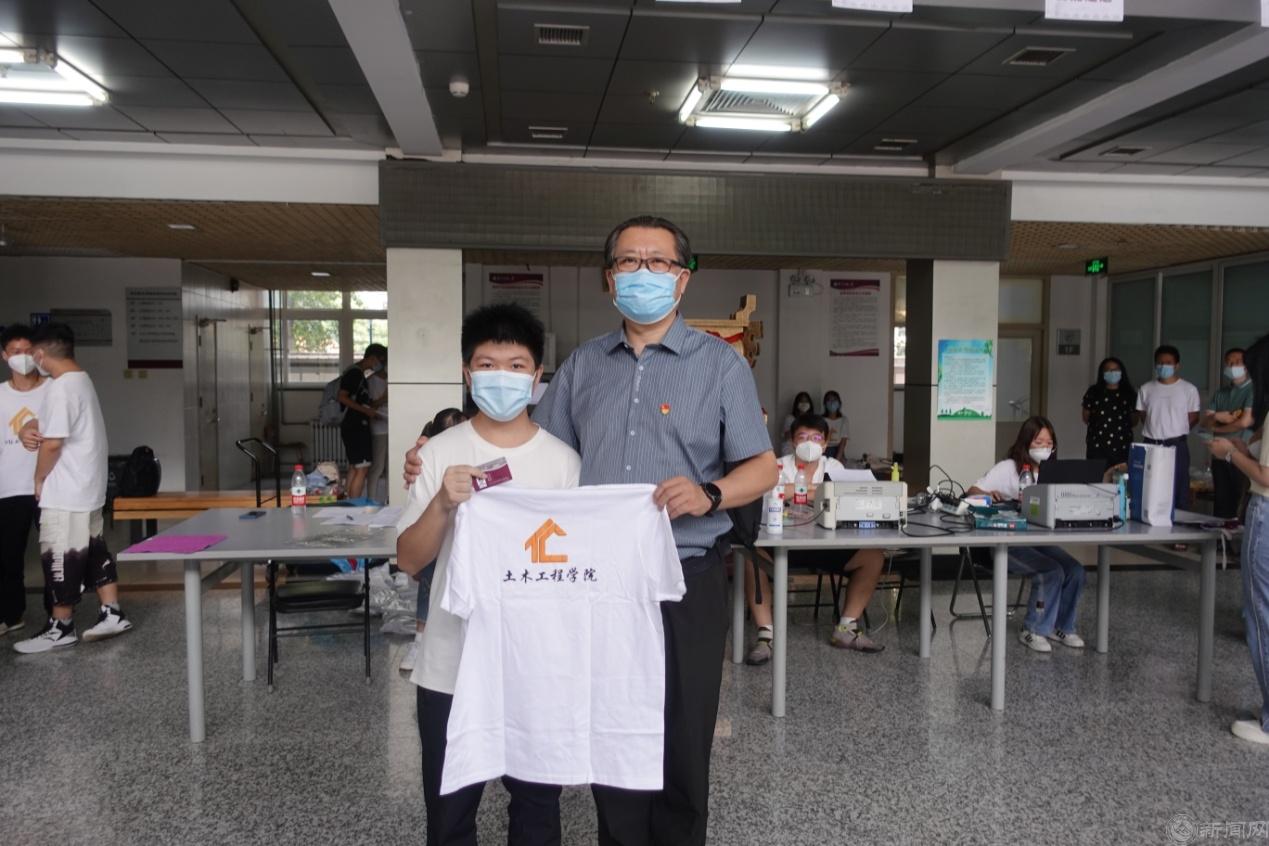 为了保障家庭困难学生顺利入学,学校继续开通“绿色通道”为同学提供周到服务,缪劲翔书记和张立峰校长来到“绿色通道”看望新同学,并赠送了“爱心大礼包”。